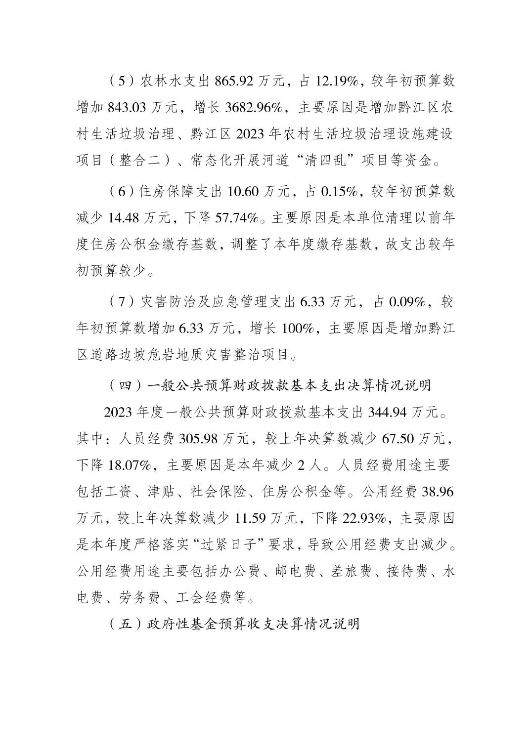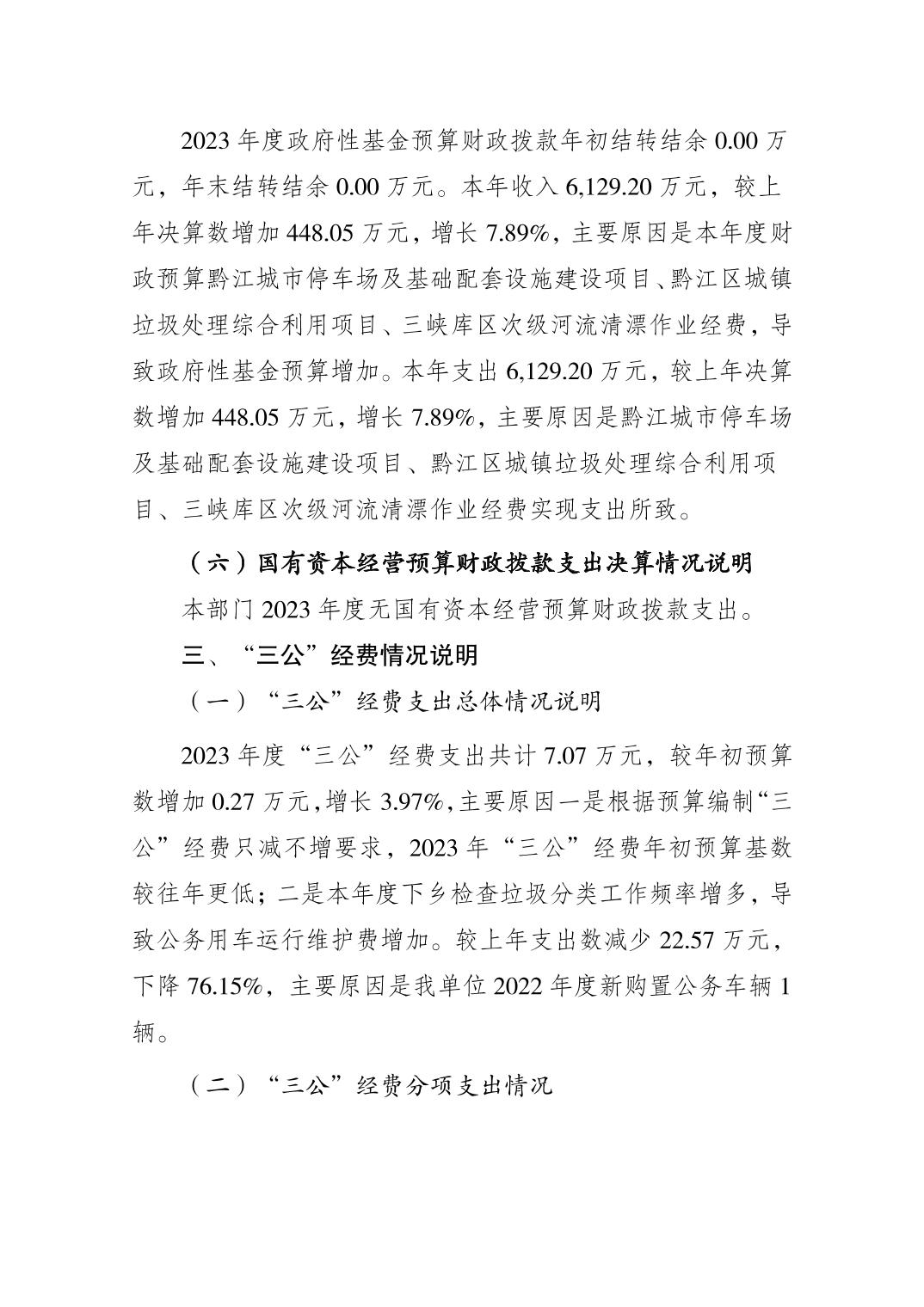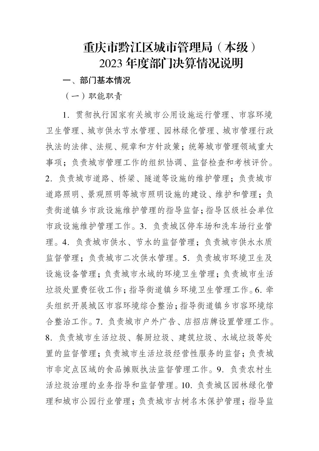 重慶市黔江區城市管理局(本級) 2023年度部門決算情況說明">