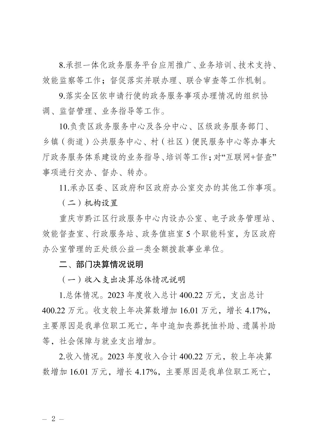 重慶市黔江區行政服務中心2023年度決算公開說明