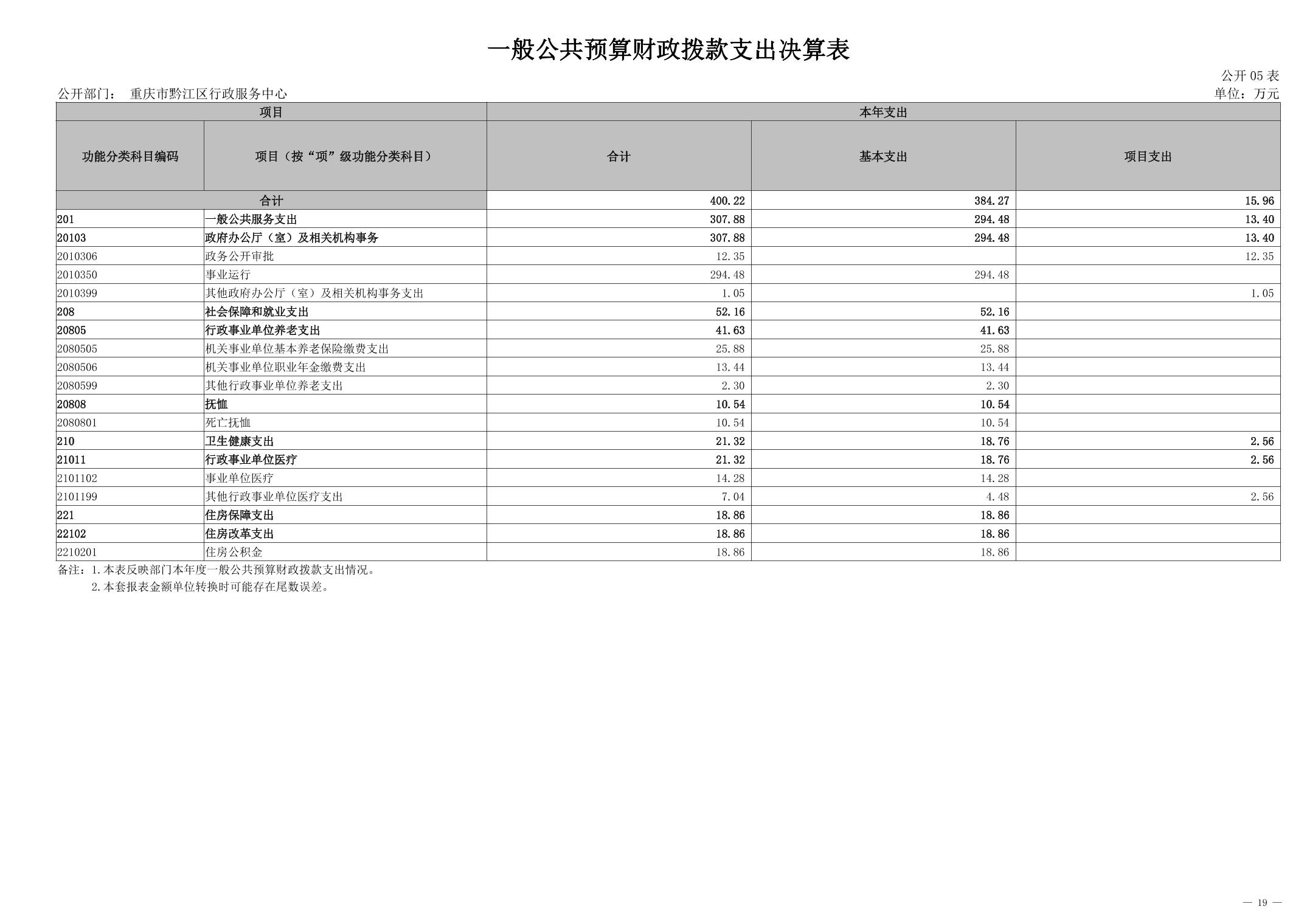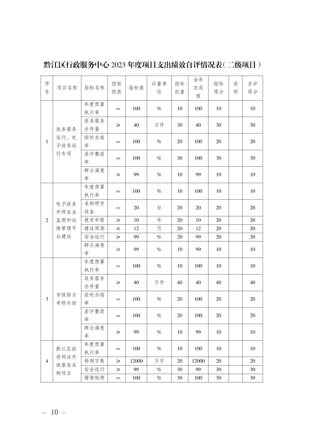 重慶市黔江區行政服務中心2023年度決算公開說明">