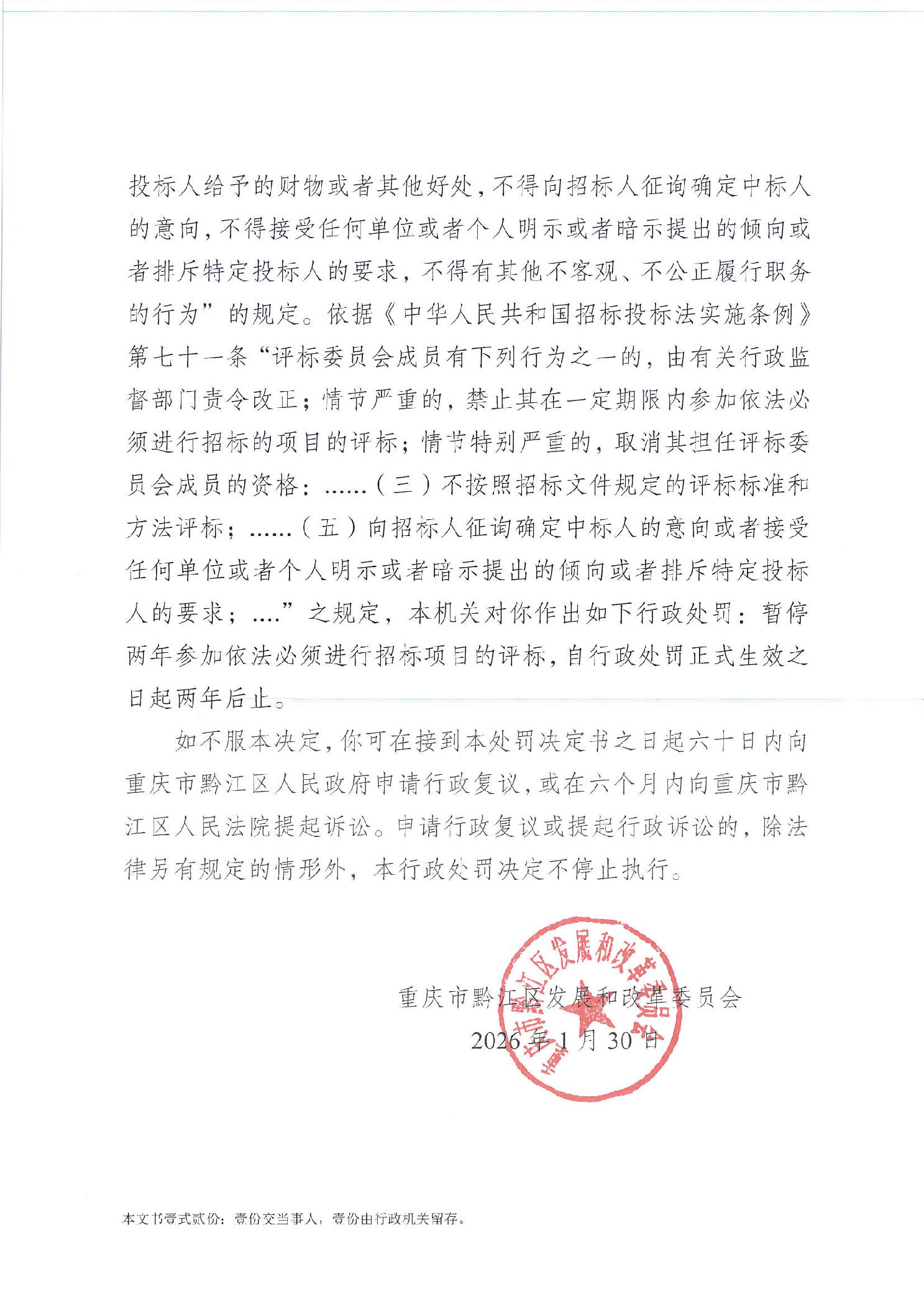 黔江發改罰〔2026〕第1號