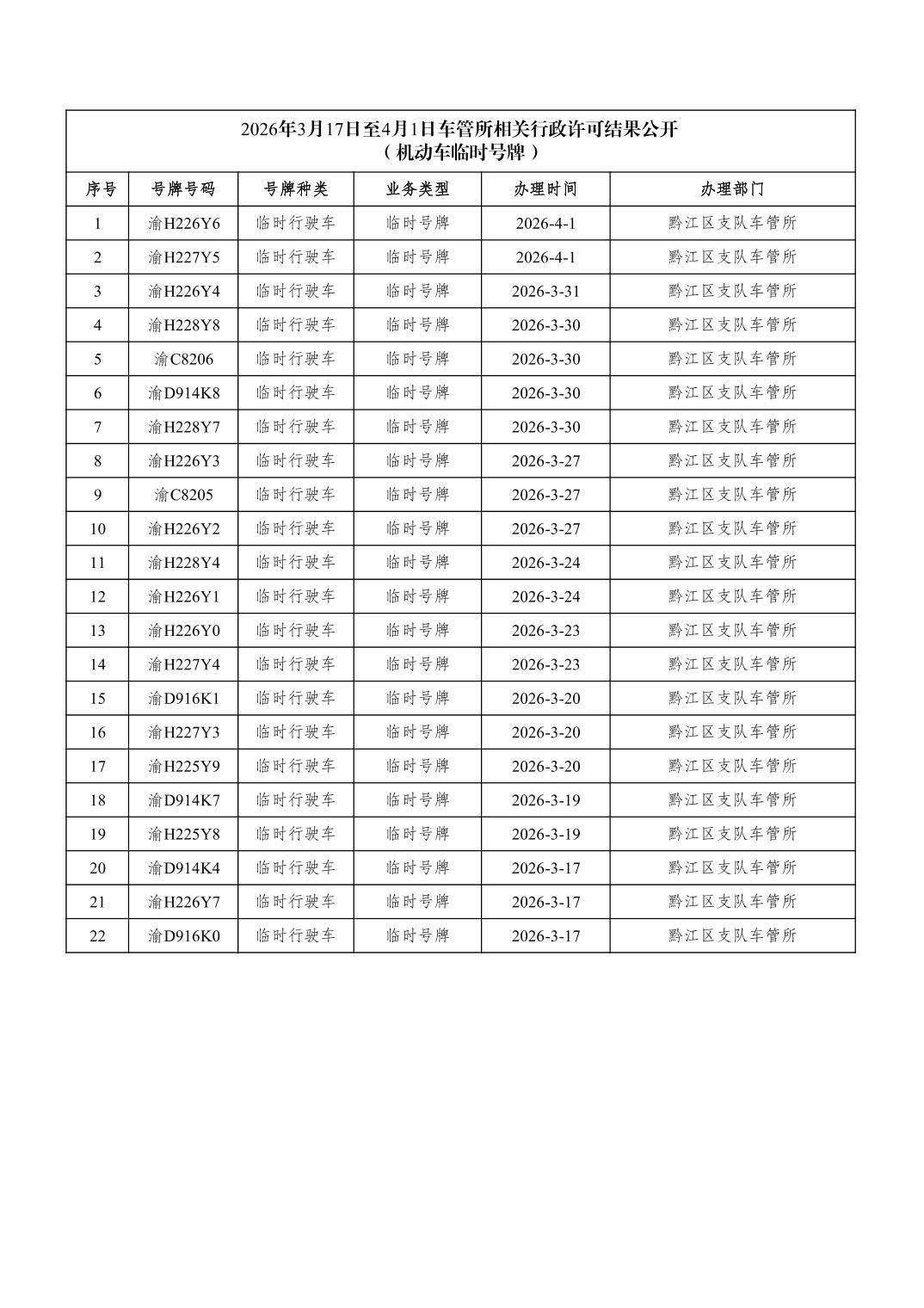 2026年3月17日至4月1日車管所相關行政許可結果公開(機動車臨時號牌)">