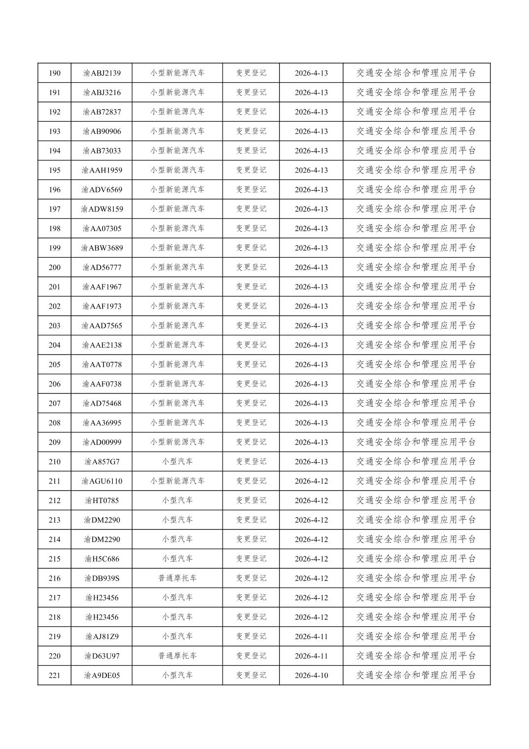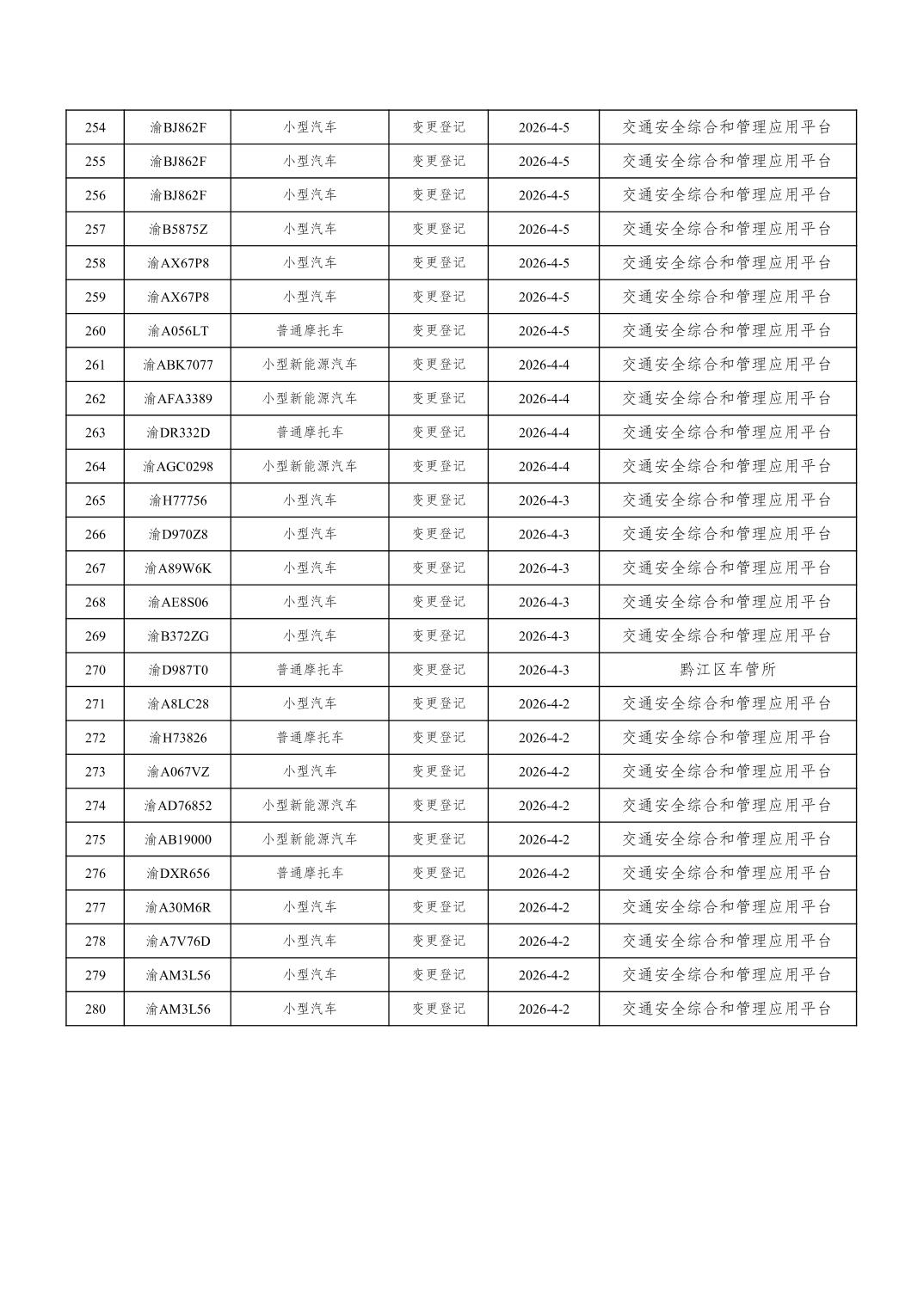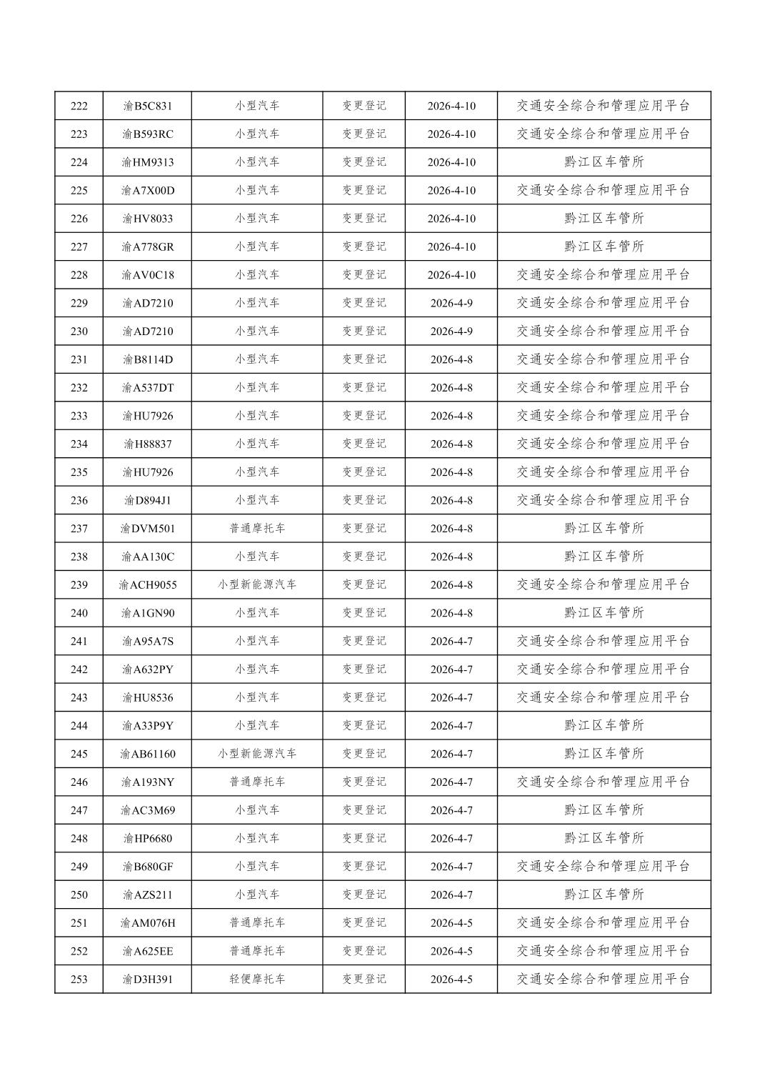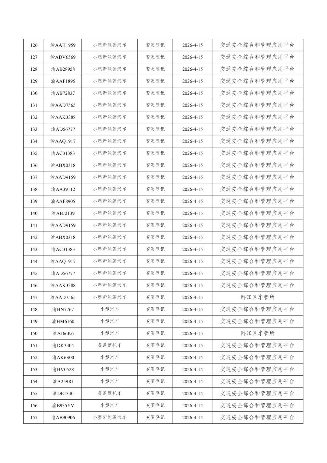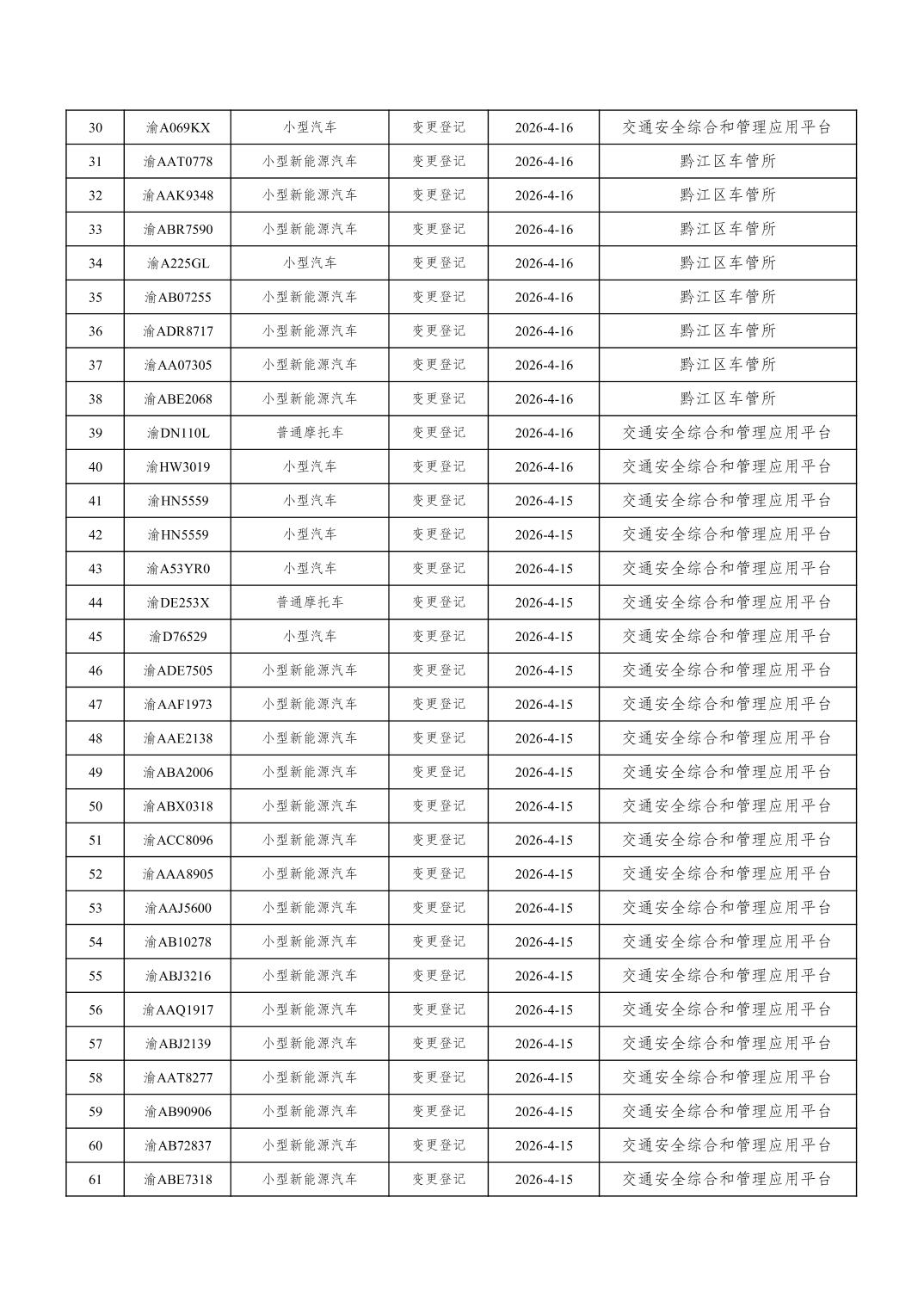 2026年4月2日至4月16日車管所相關行政許可結果公開(機動車變更登記)">