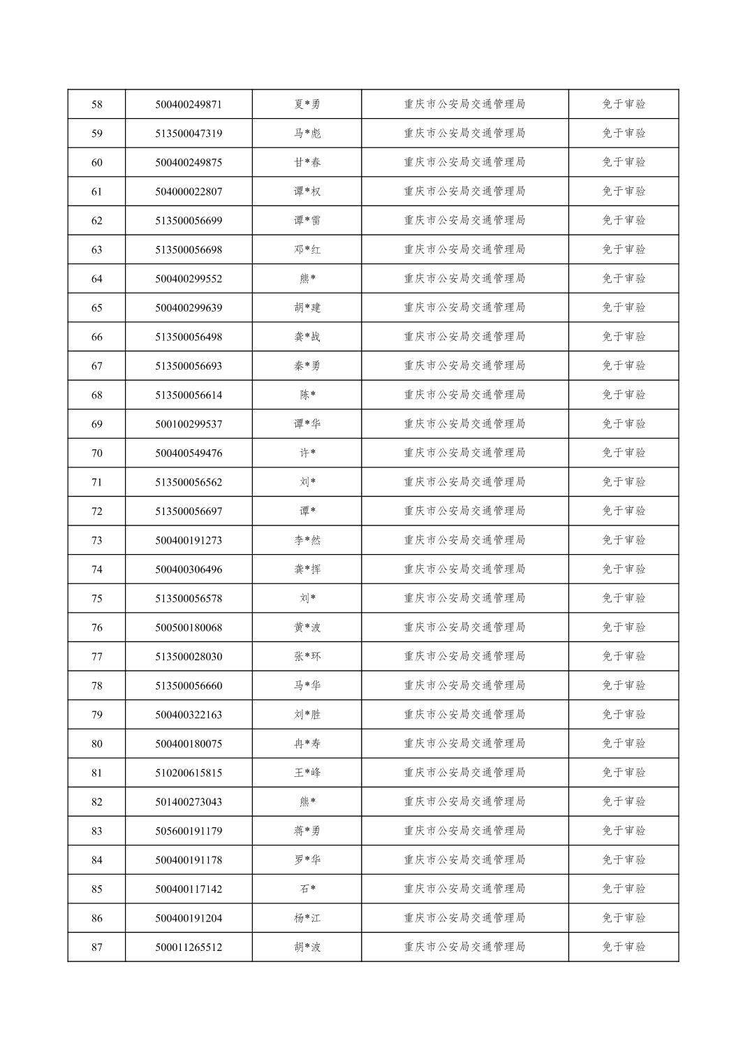 2026年4月2日至4月16日車管所相關(guān)行政許可結(jié)果公開(駕駛證審驗(yàn))