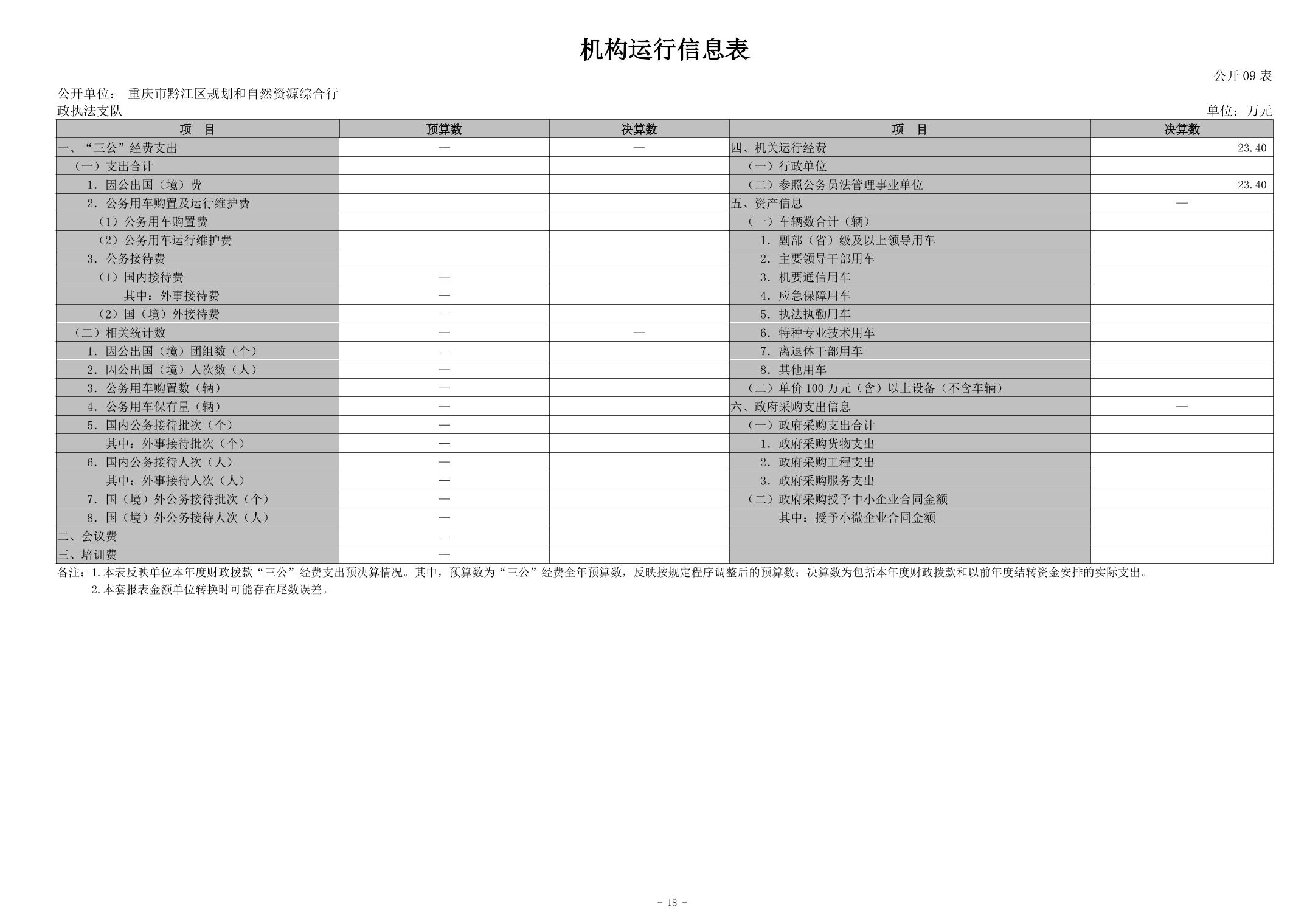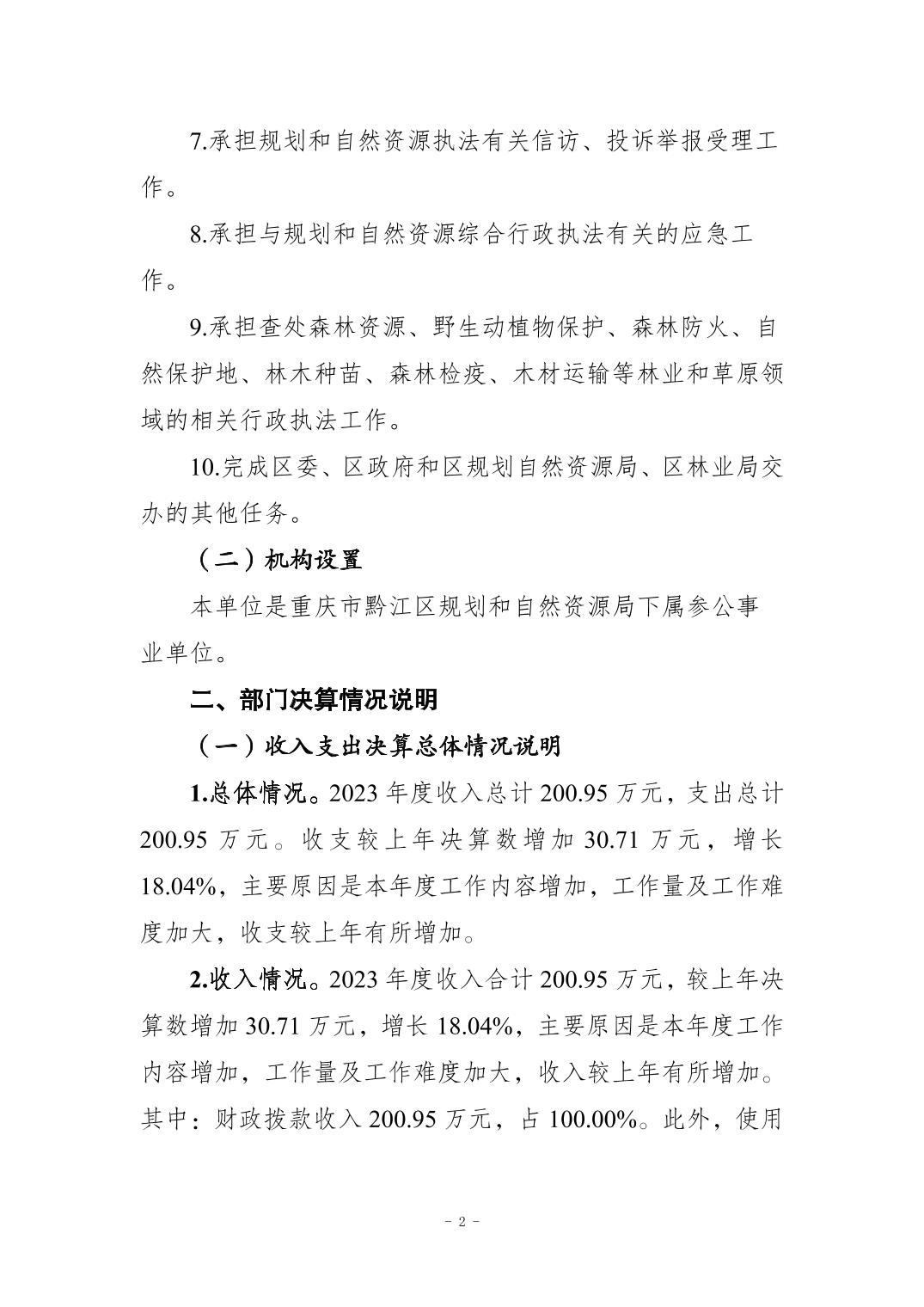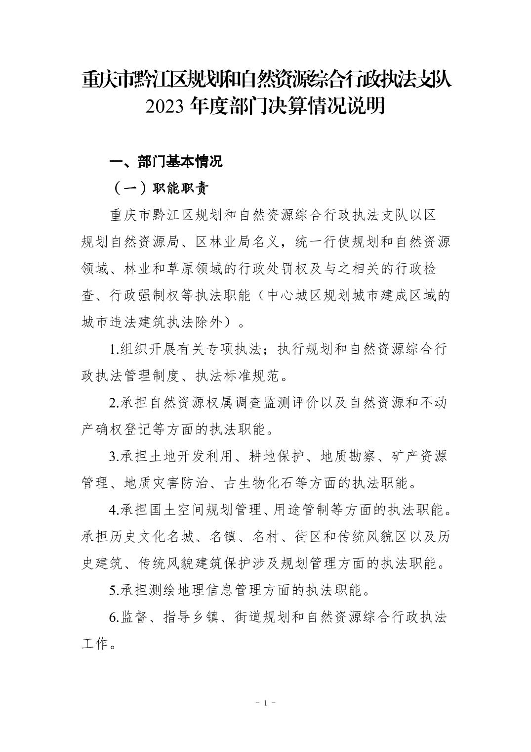 重慶市黔江區規劃和自然資源綜合行政執法支隊2023年度部門決算情況說明">
