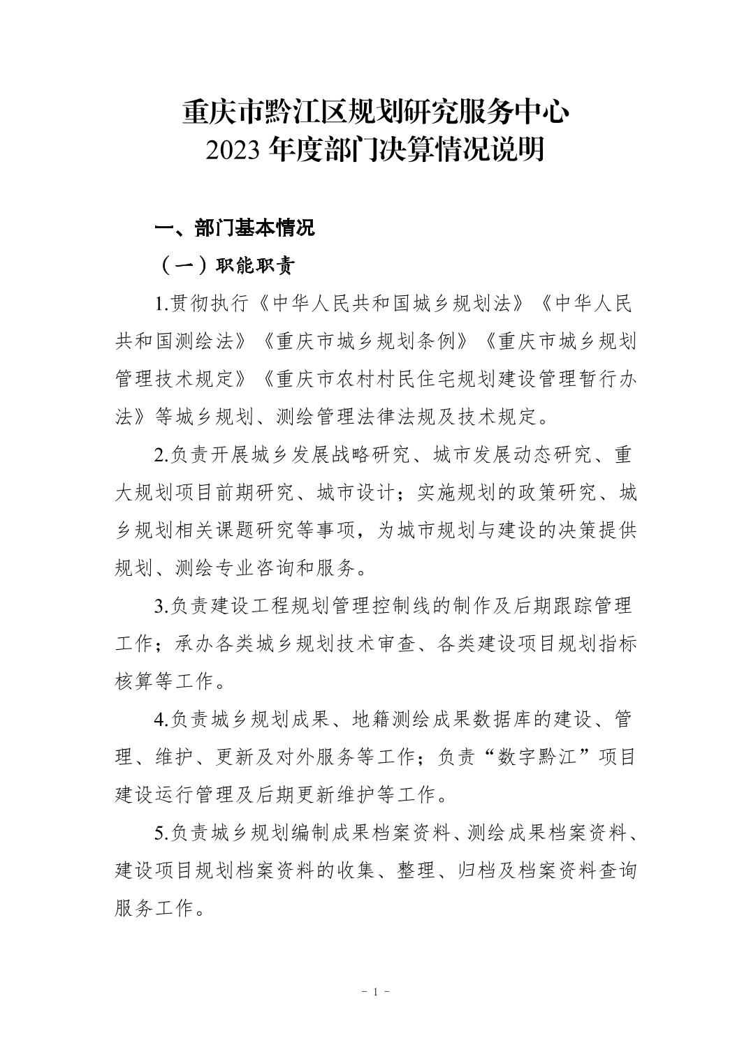 重慶市黔江區(qū)規(guī)劃研究服務(wù)中心2023年度部門決算情況說(shuō)明">