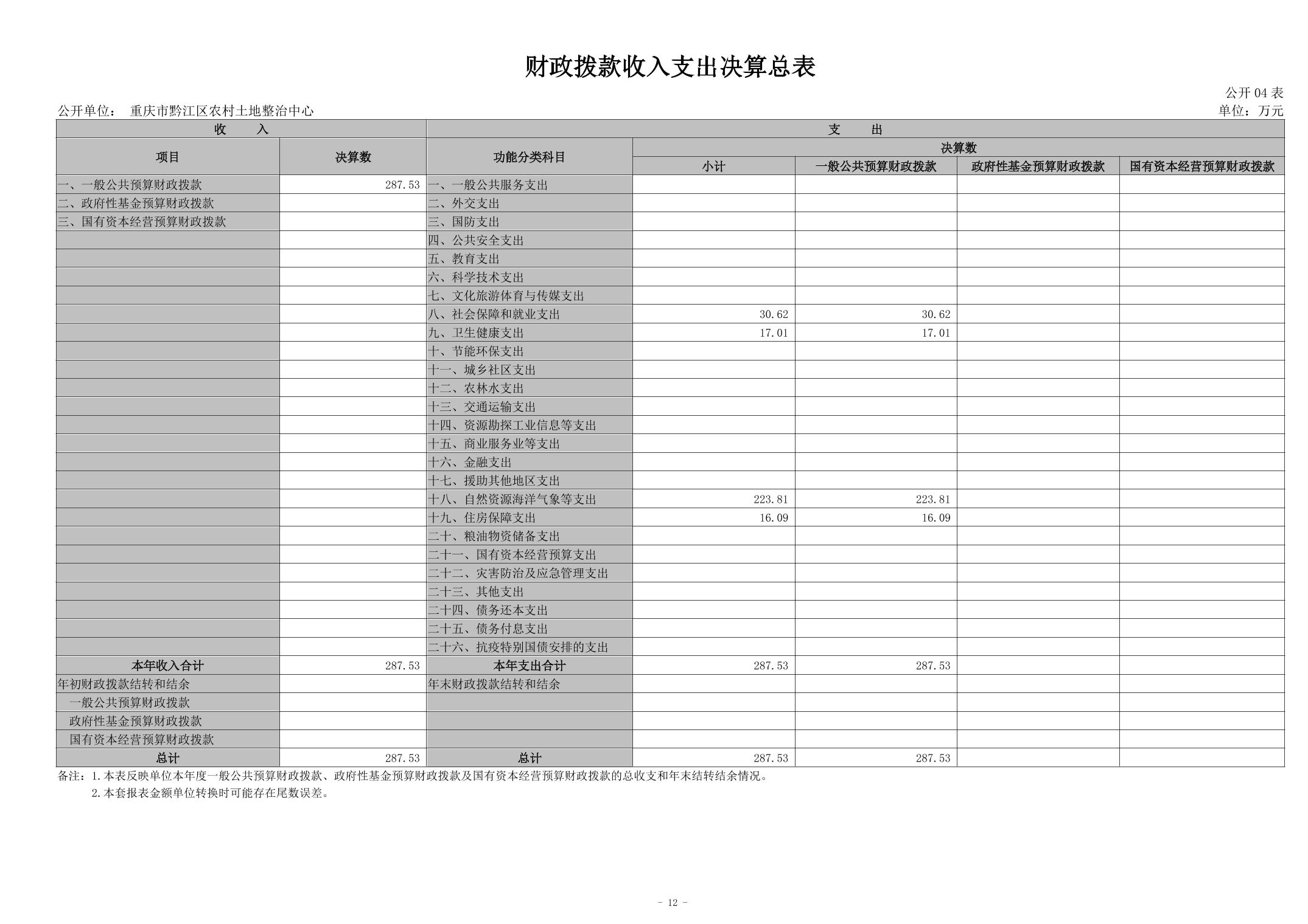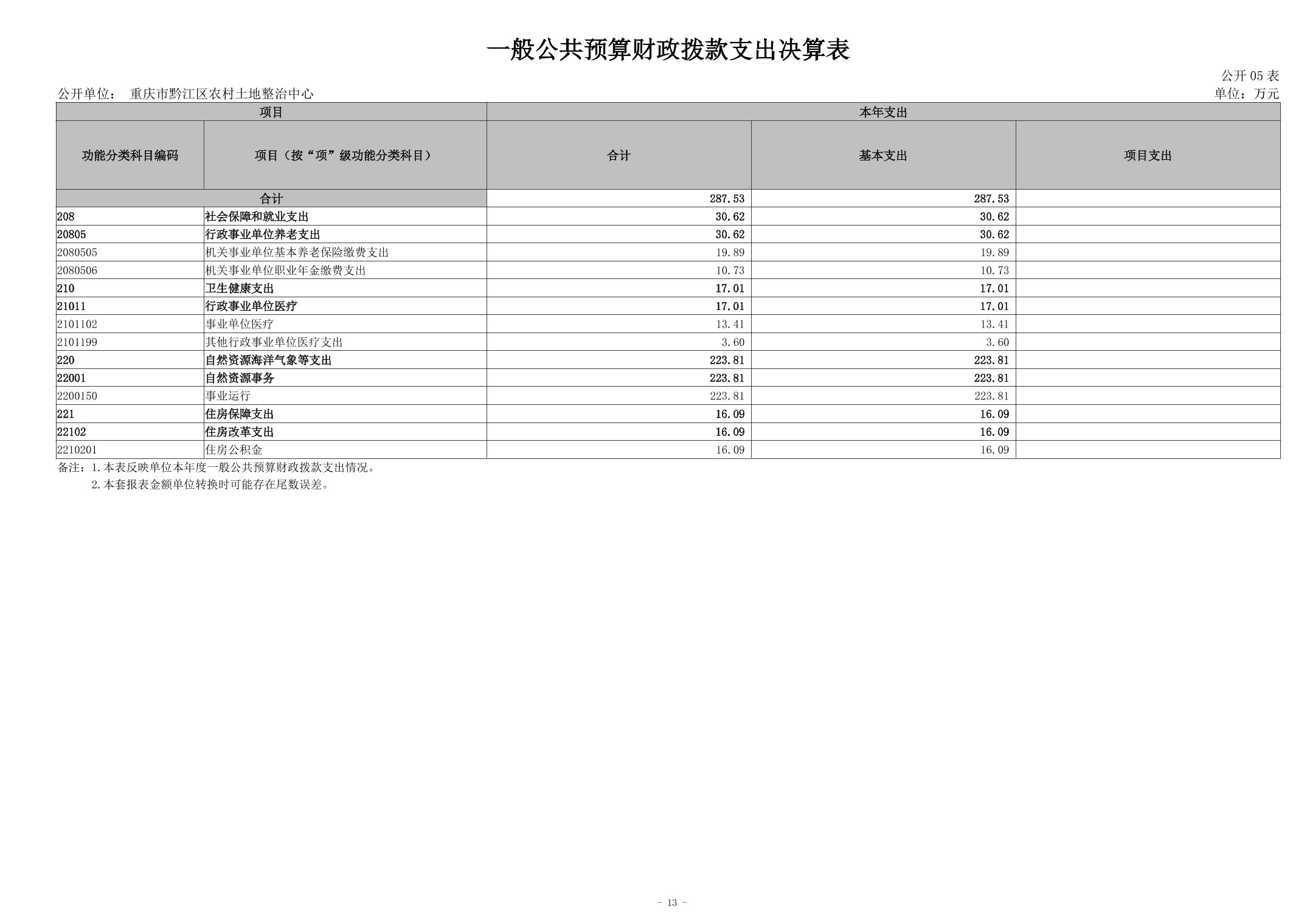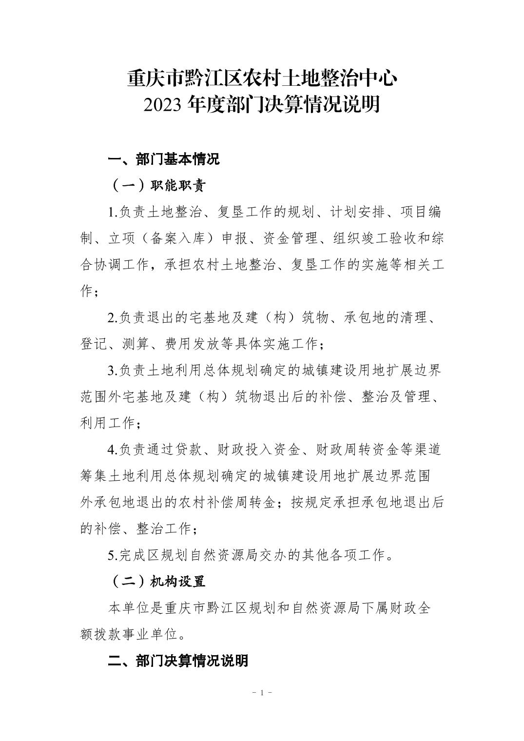 重慶市黔江區農村土地整治中心2023年度部門決算情況說明">