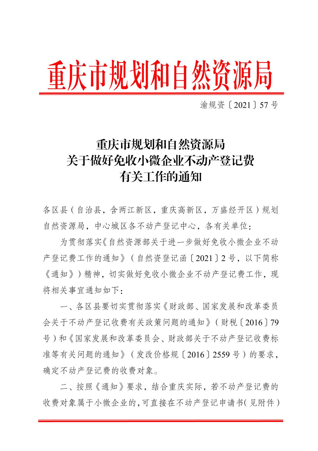 重慶市規劃和自然資源局關于做好免收小微企業不動產登記費有關工作的通知">