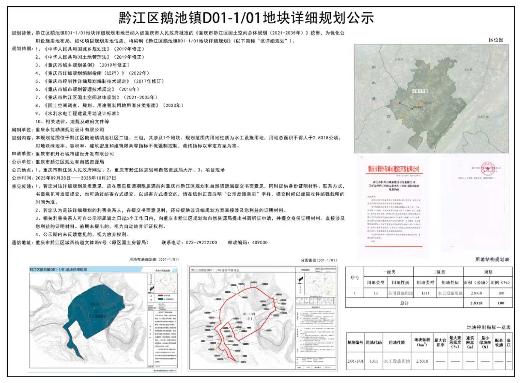 黔江區鵝池鎮D01-101地塊詳細規劃公告