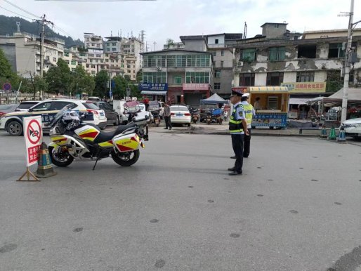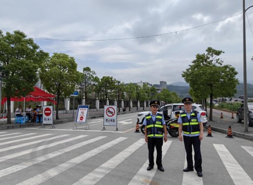 交通運(yùn)輸執(zhí)法人員在考點(diǎn)外與公安維護(hù)運(yùn)輸秩序