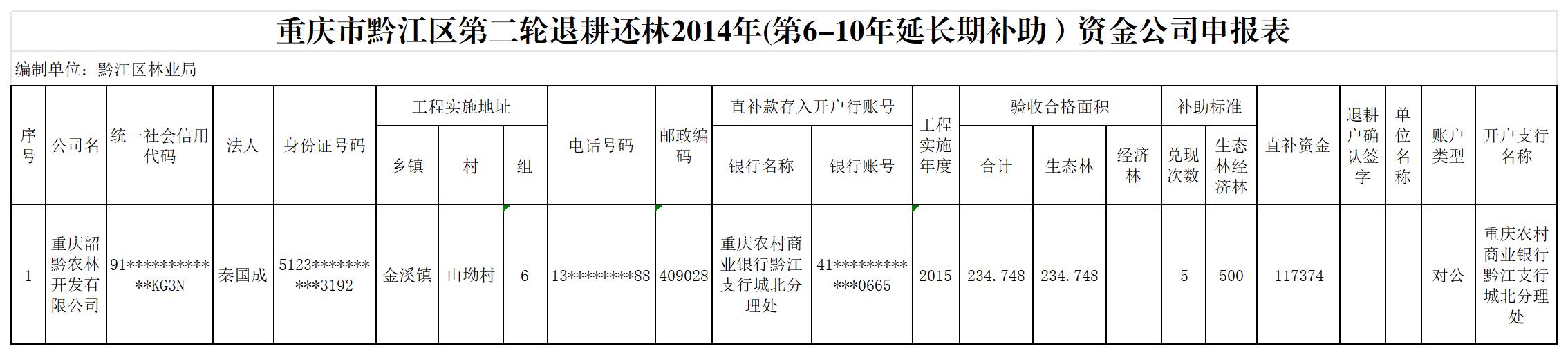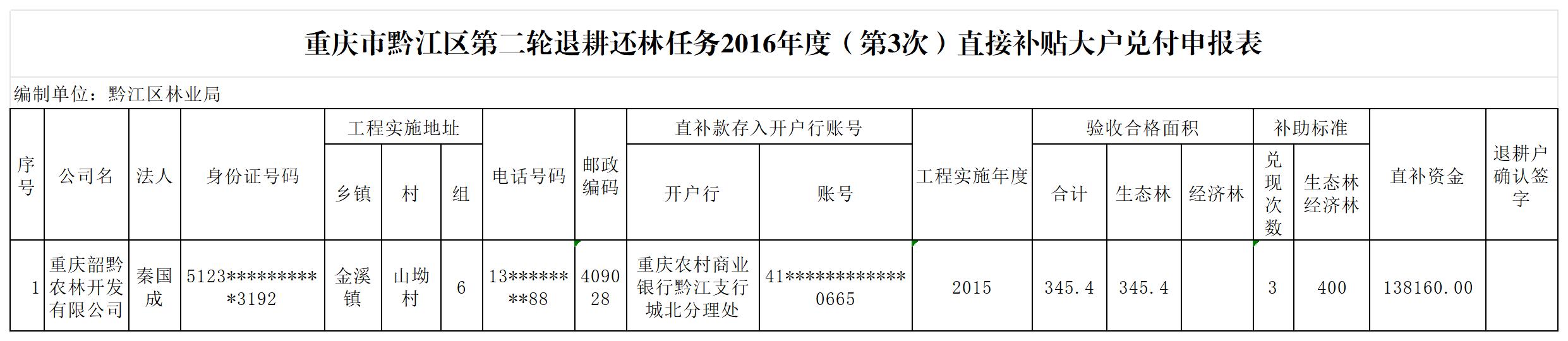 重慶市黔江區(qū)林業(yè)局2026年第二輪退耕還林1月補助資金兌付情況公示(金溪鎮(zhèn))