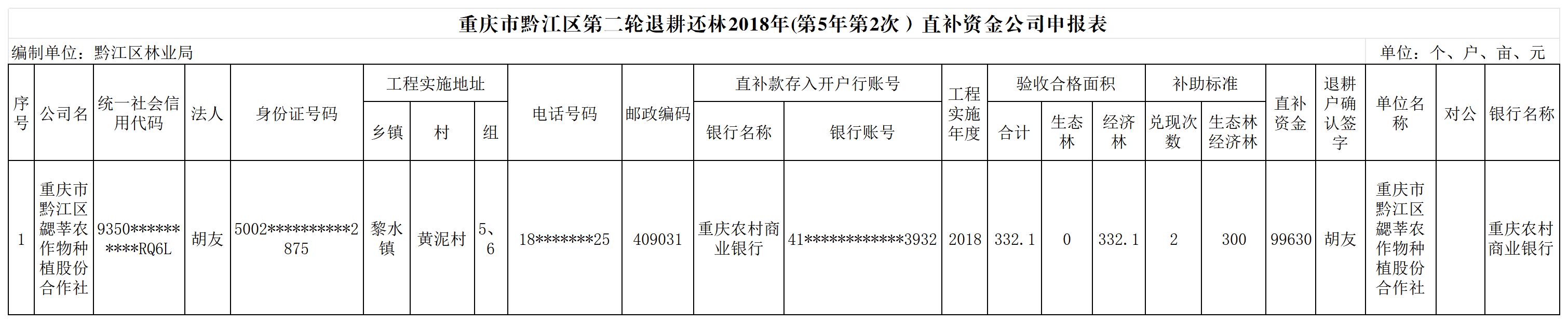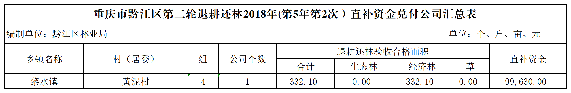 重慶市黔江區(qū)林業(yè)局2026年第二輪退耕還林2月補助資金兌付情況公示(黎水鎮(zhèn))