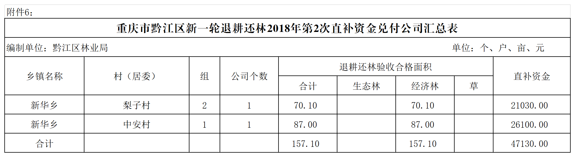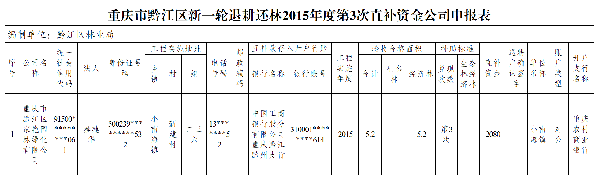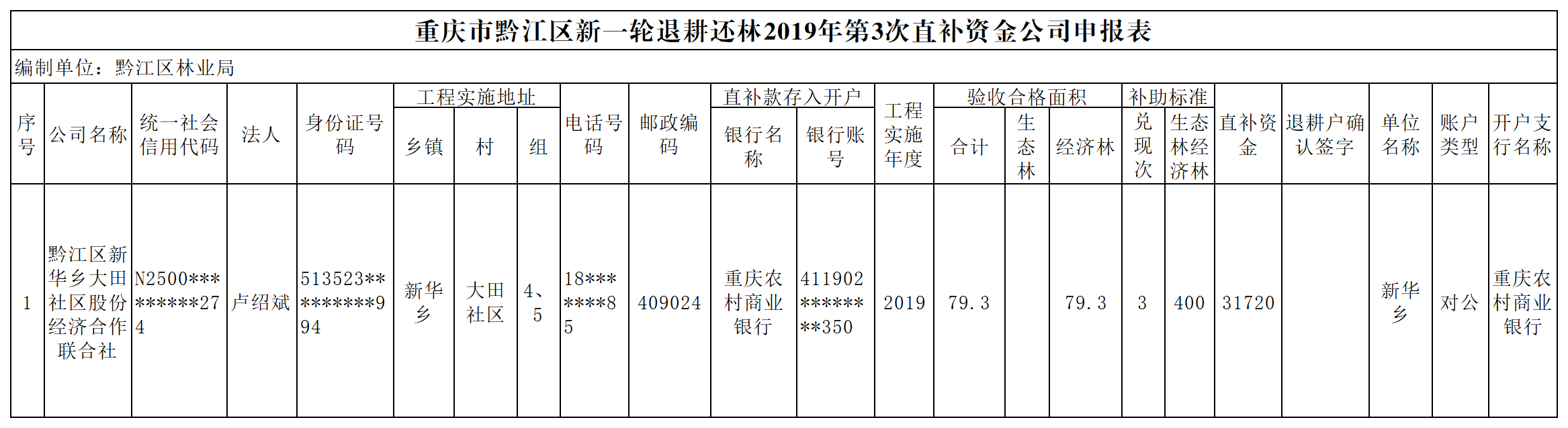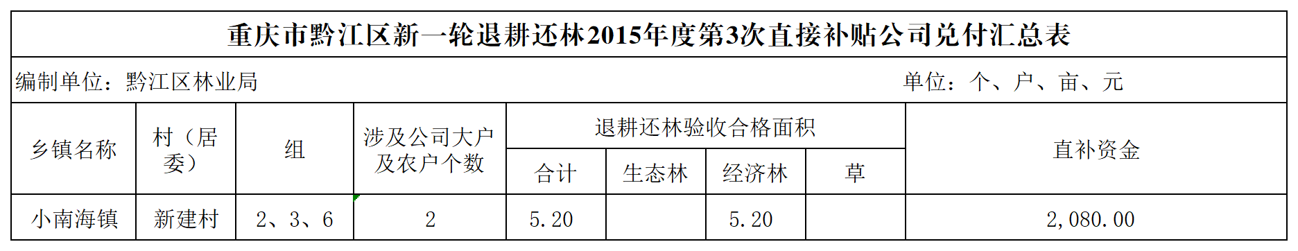 重慶市黔江區林業局2026年第二輪退耕還林3月補助資金兌付情況公示(白土鄉、小南海鎮、白石鎮、新華鄉、黃溪鎮)
