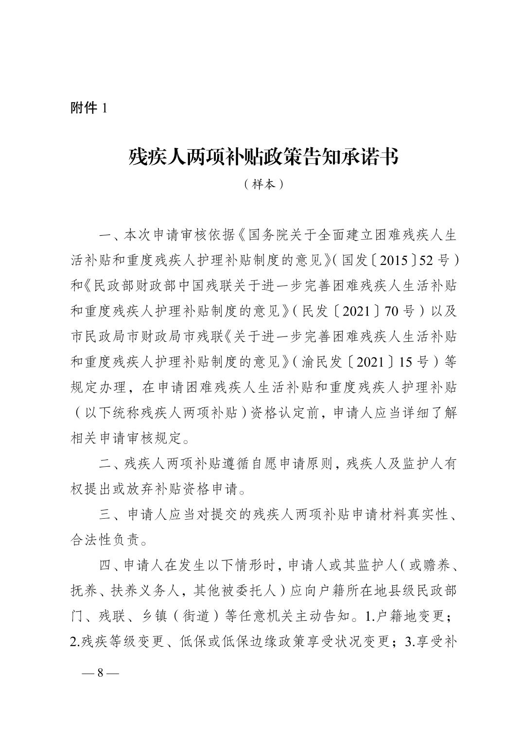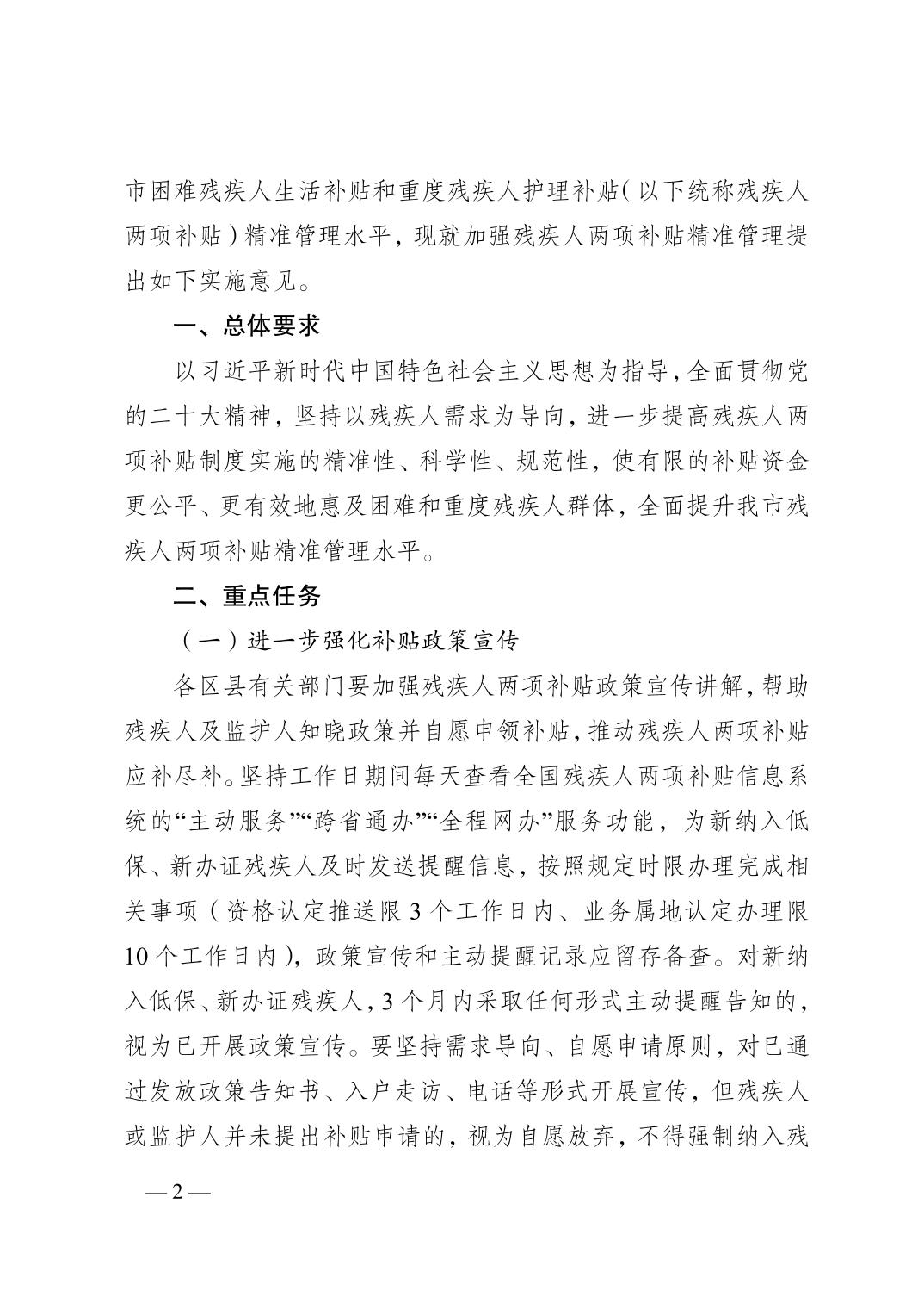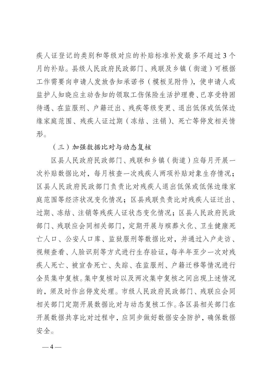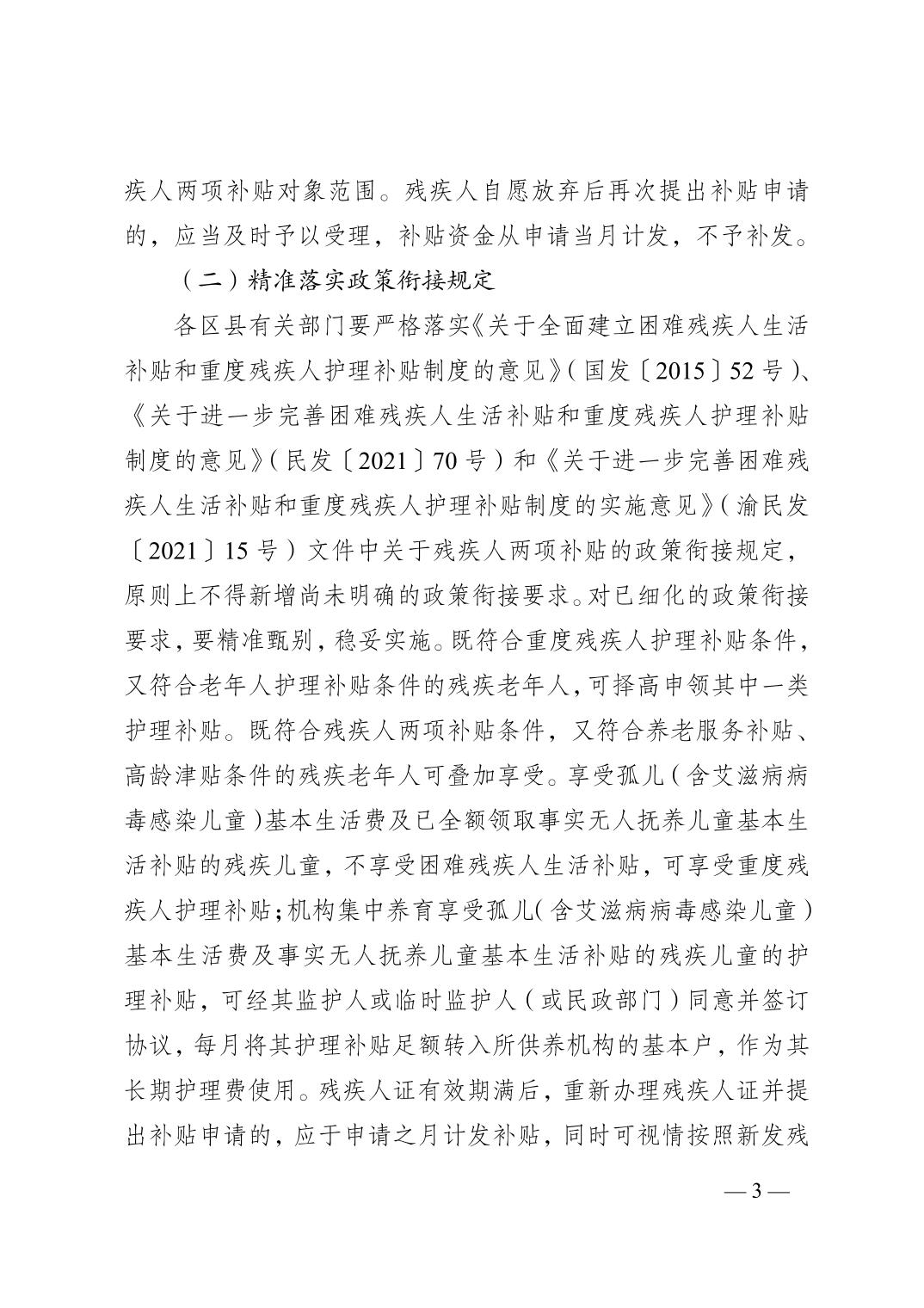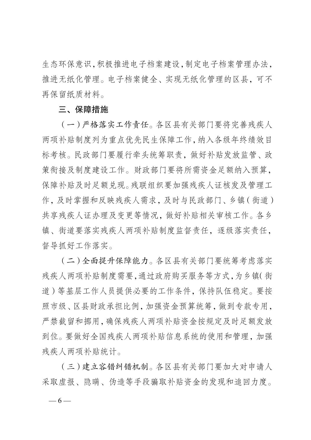 重慶市民政局等三部門關于加強殘疾人兩項補貼精準管理的實施意見