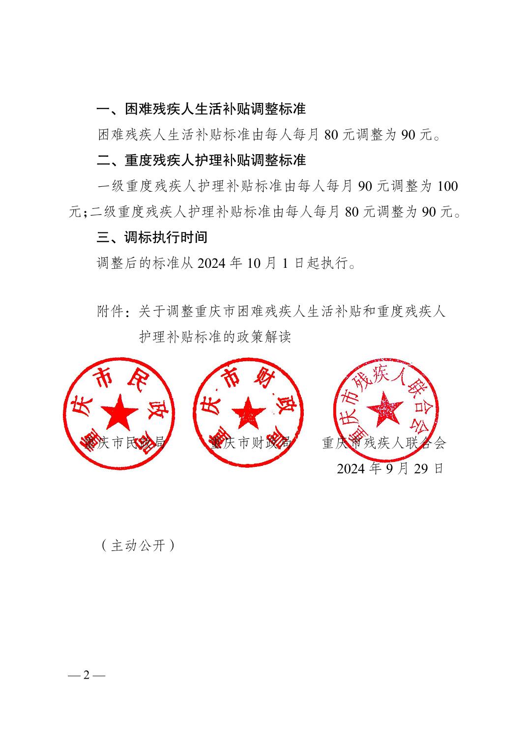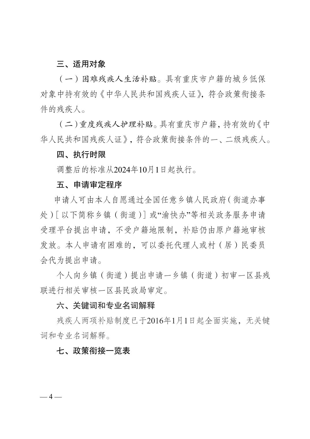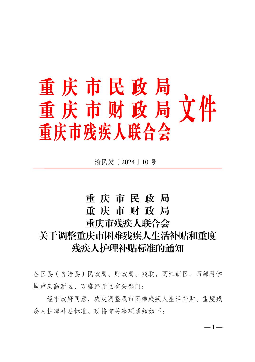 重慶市民政局等三部門關(guān)于調(diào)整重慶市困難殘疾人生活補(bǔ)貼和重度殘疾人護(hù)理補(bǔ)貼標(biāo)準(zhǔn)的通知