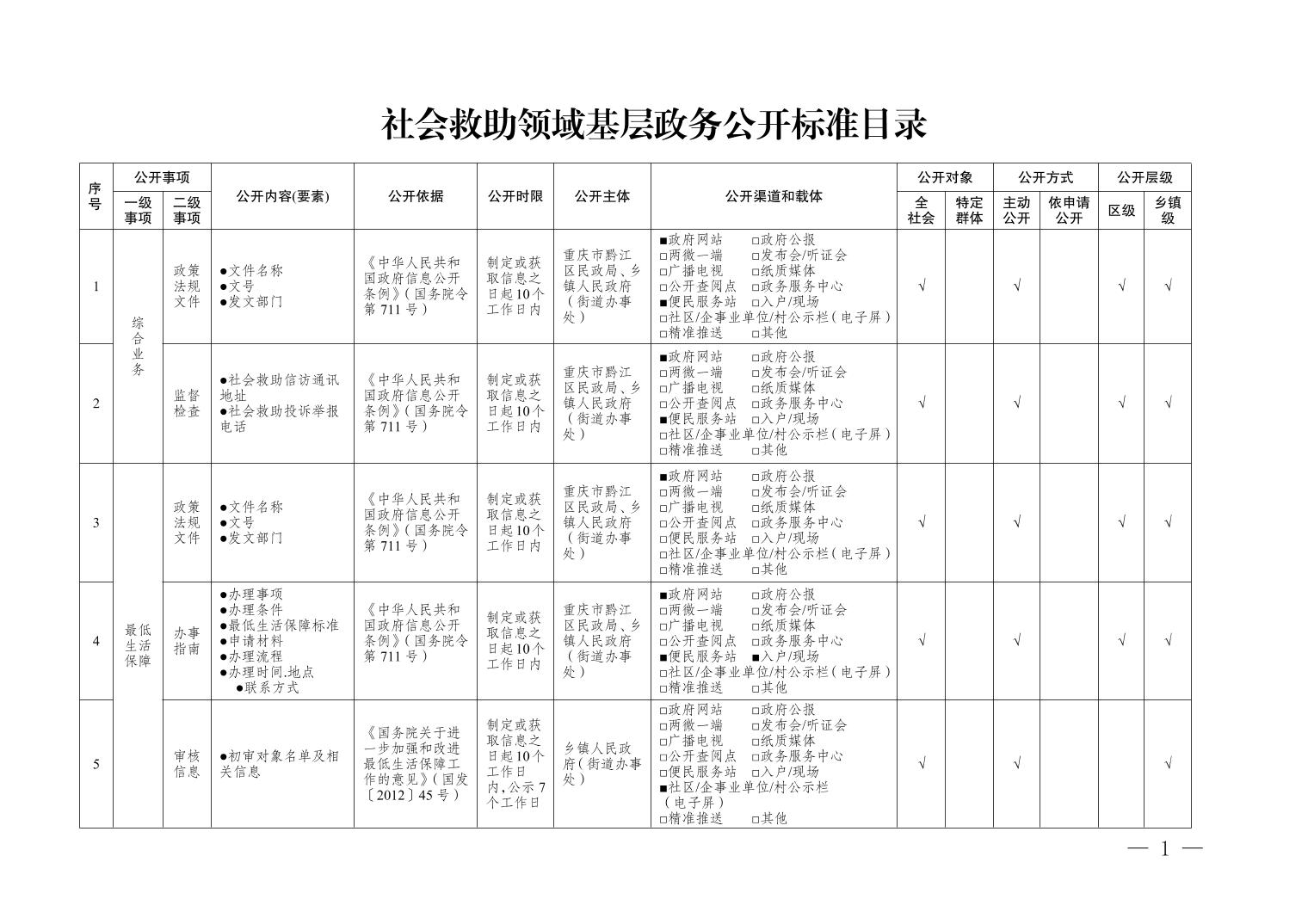 黔江區(qū)社會救助領(lǐng)域基層政務(wù)公開標準目錄(2026版)
