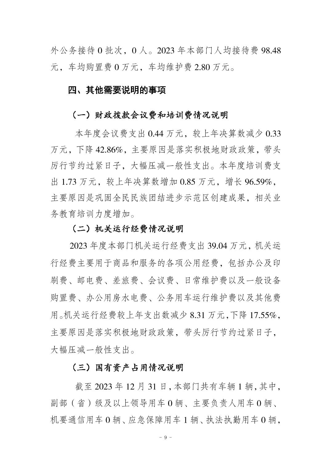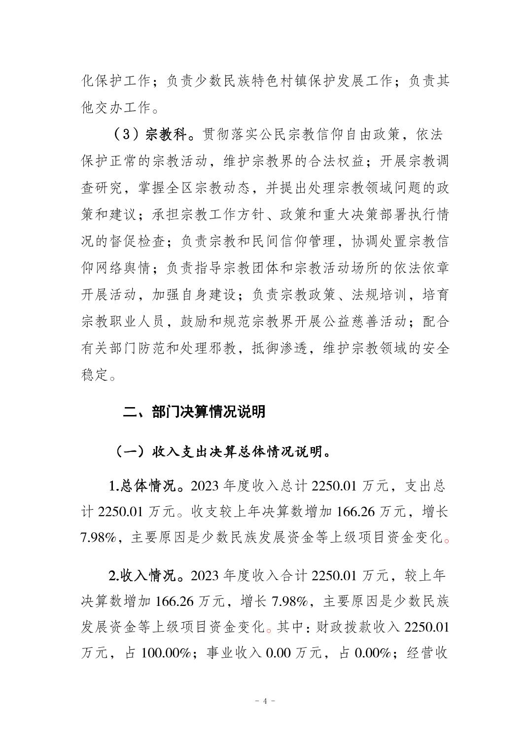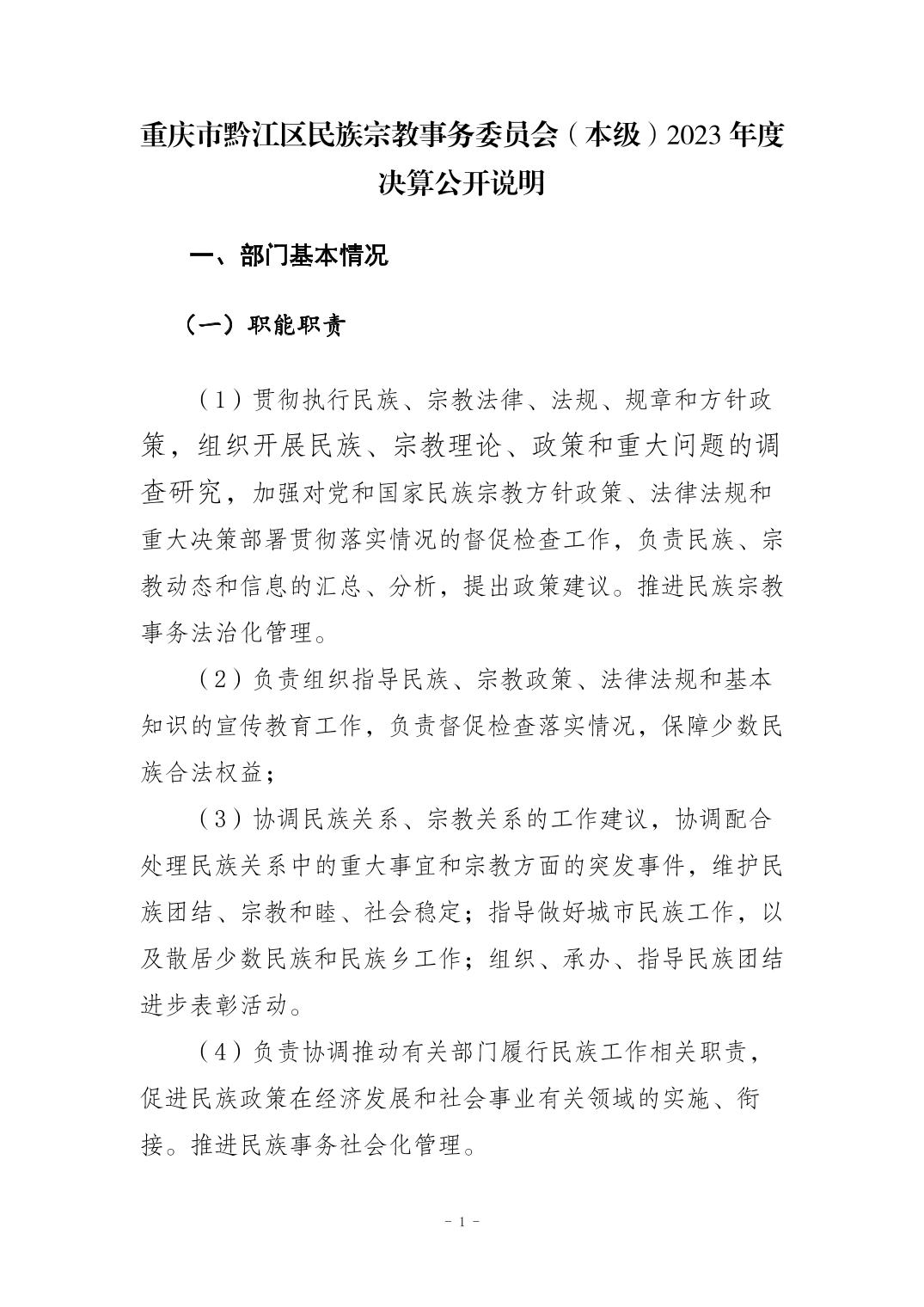 重慶市黔江區民族宗教事務委員會(本級)2023年度決算公開說明">