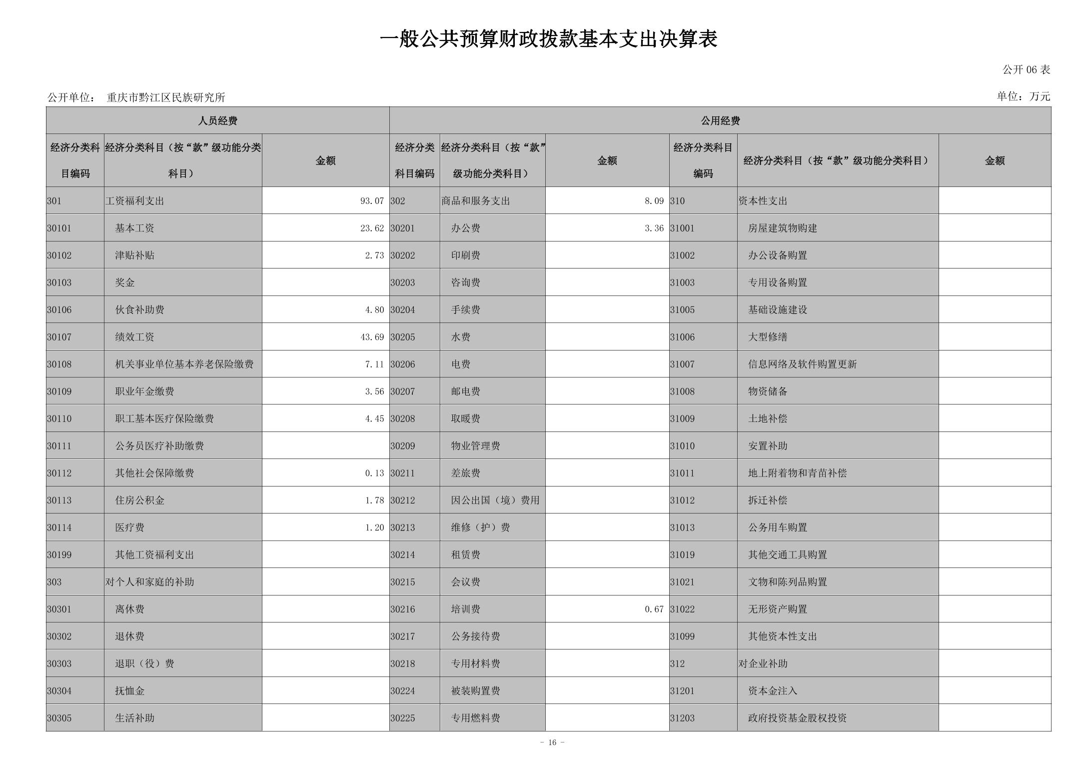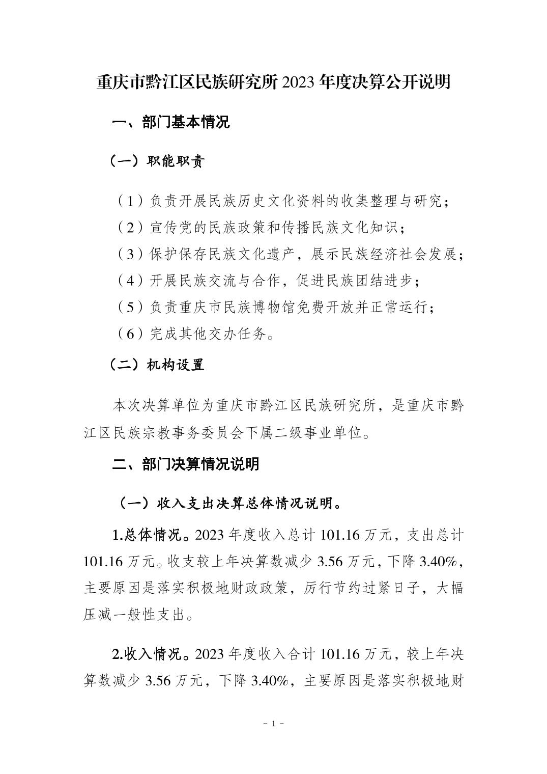 重慶市黔江區(qū)民族研究所2023年度決算公開說明