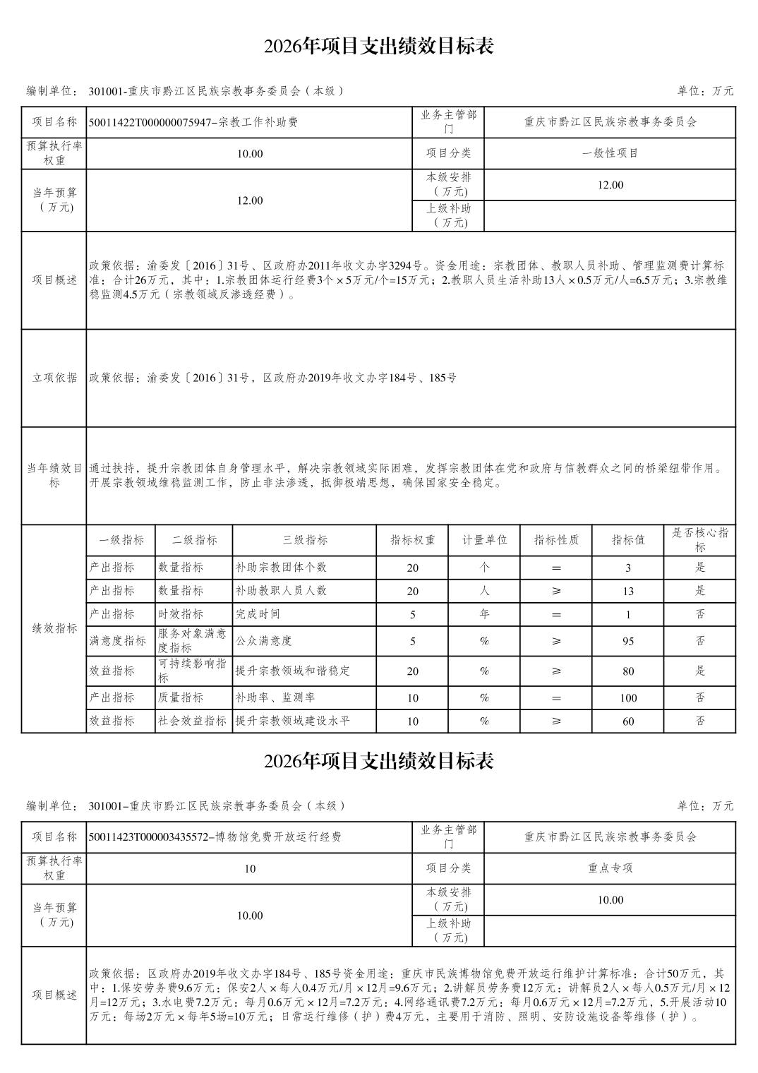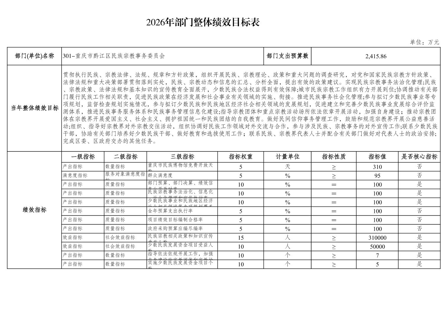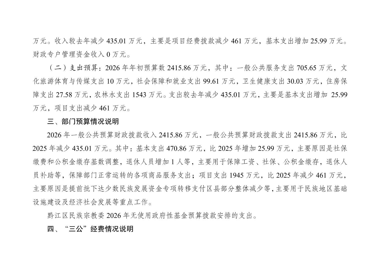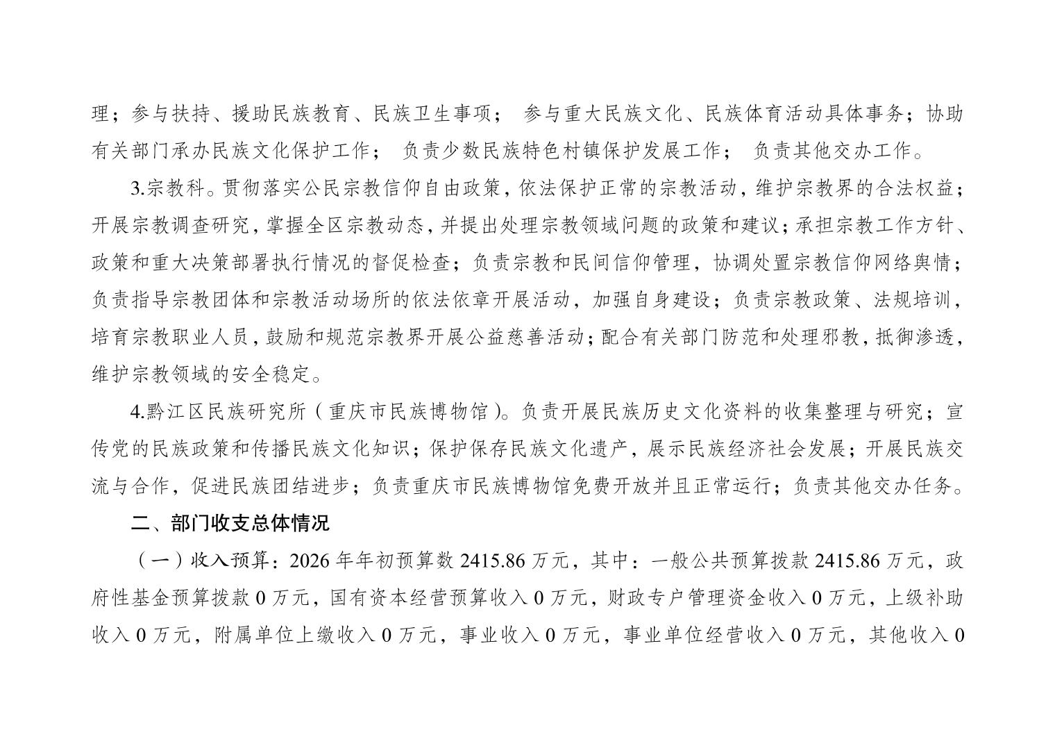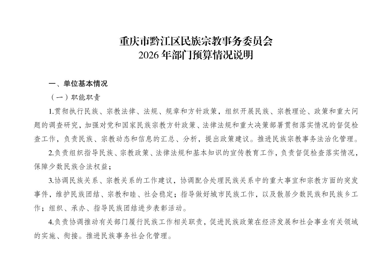 重慶市黔江區民族宗教事務委員會2026年部門預算情況說明">