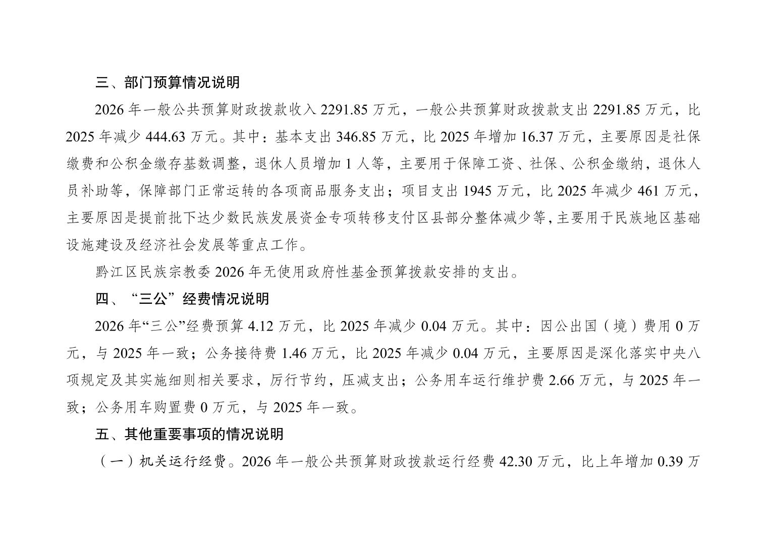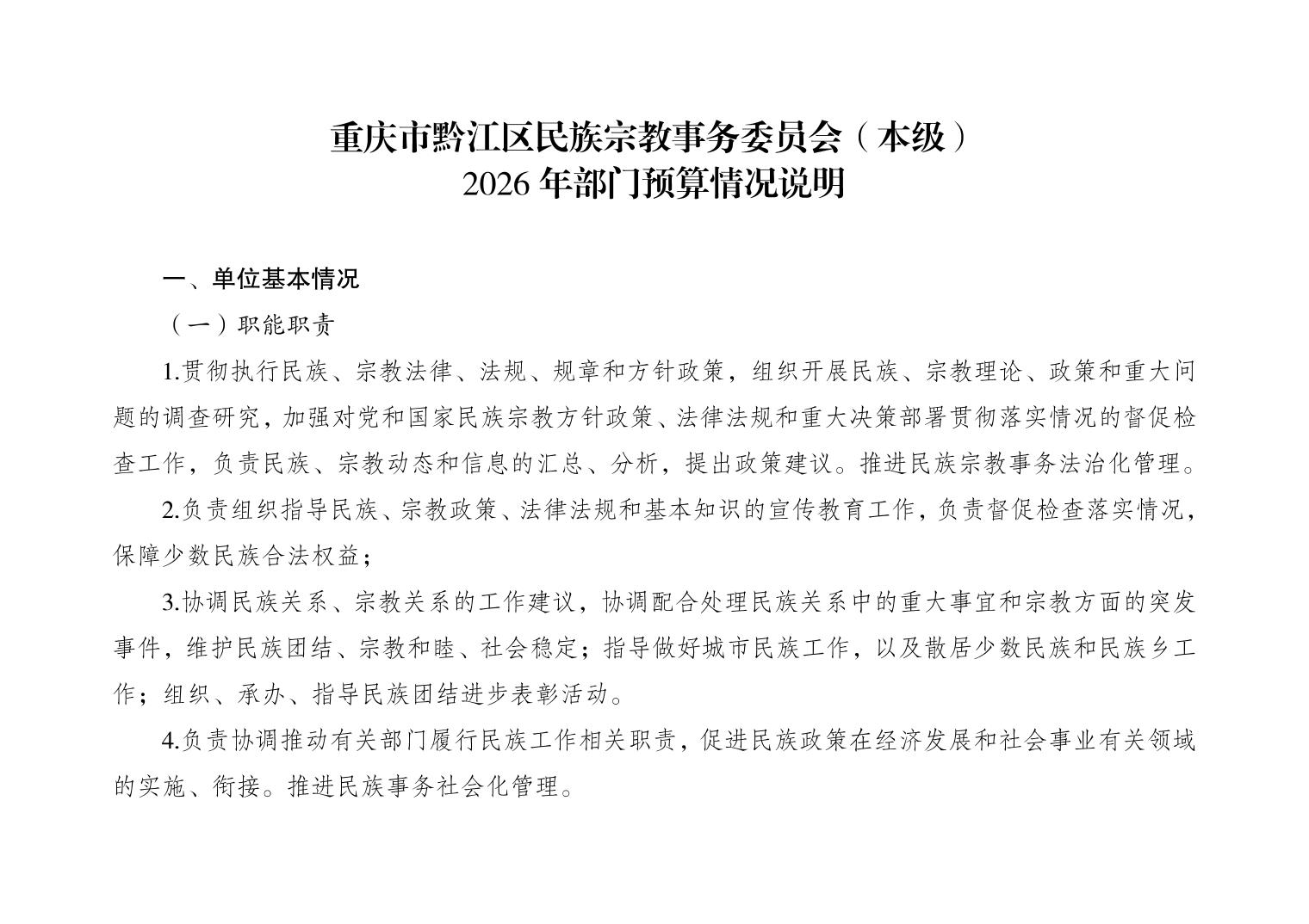 重慶市黔江區民族宗教事務委員會(本級)2026年部門預算情況說明">
