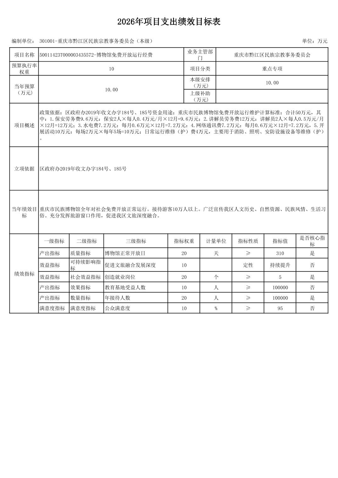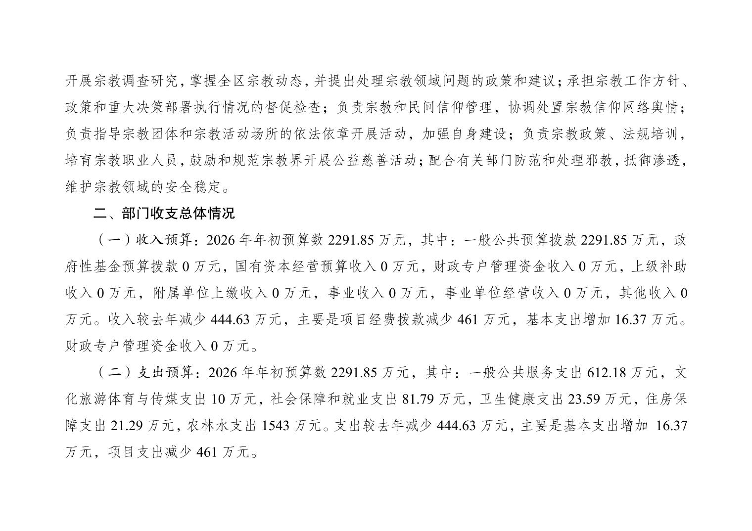 重慶市黔江區民族宗教事務委員會(本級)2026年部門預算情況說明