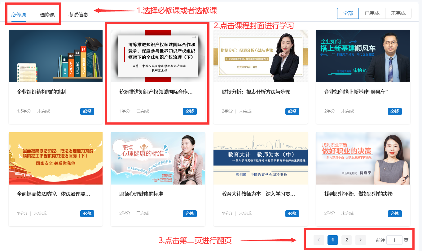 2.在課程展示頁(yè)面,可通過(guò)切換頁(yè)碼查看所有課程。