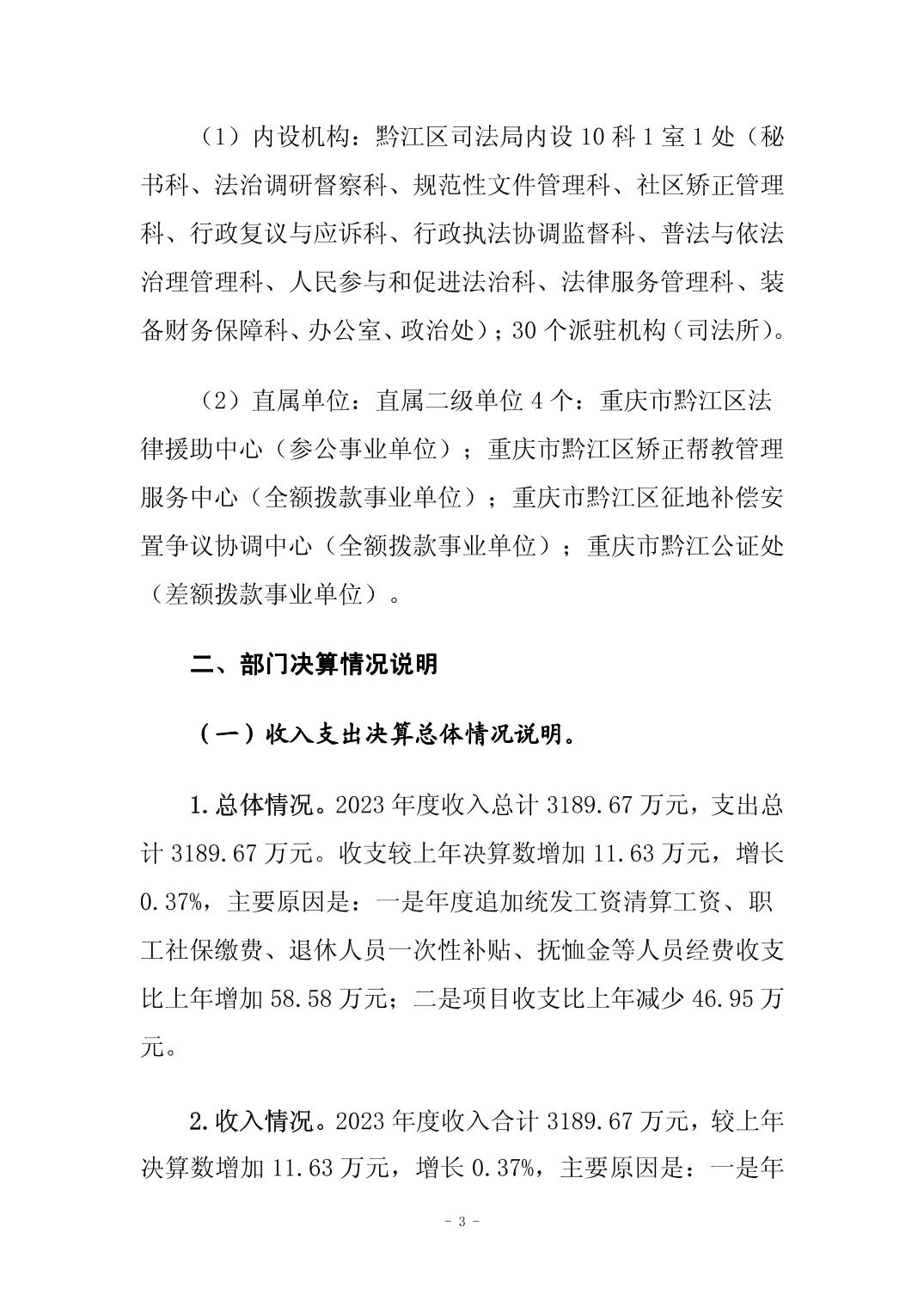 重慶市黔江區司法局2023年部門決算公開說明">