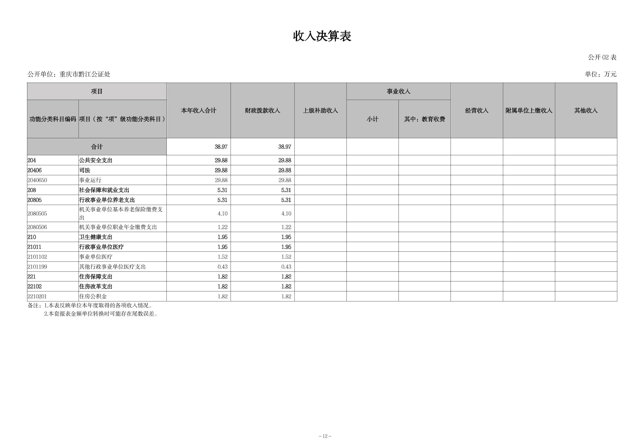 重慶市黔江公證處2024年度決算公開報告及公開報表">