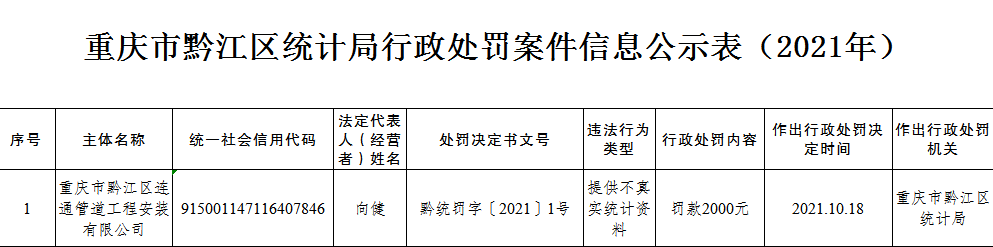統計行政處罰公示