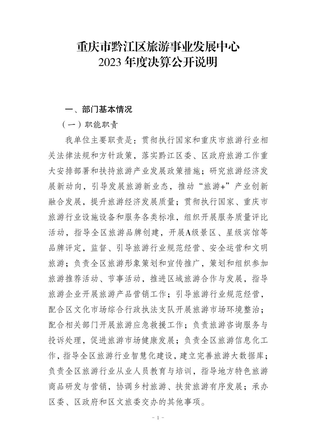 重慶市黔江區旅游事業發展中心2023年度決算公開說明">