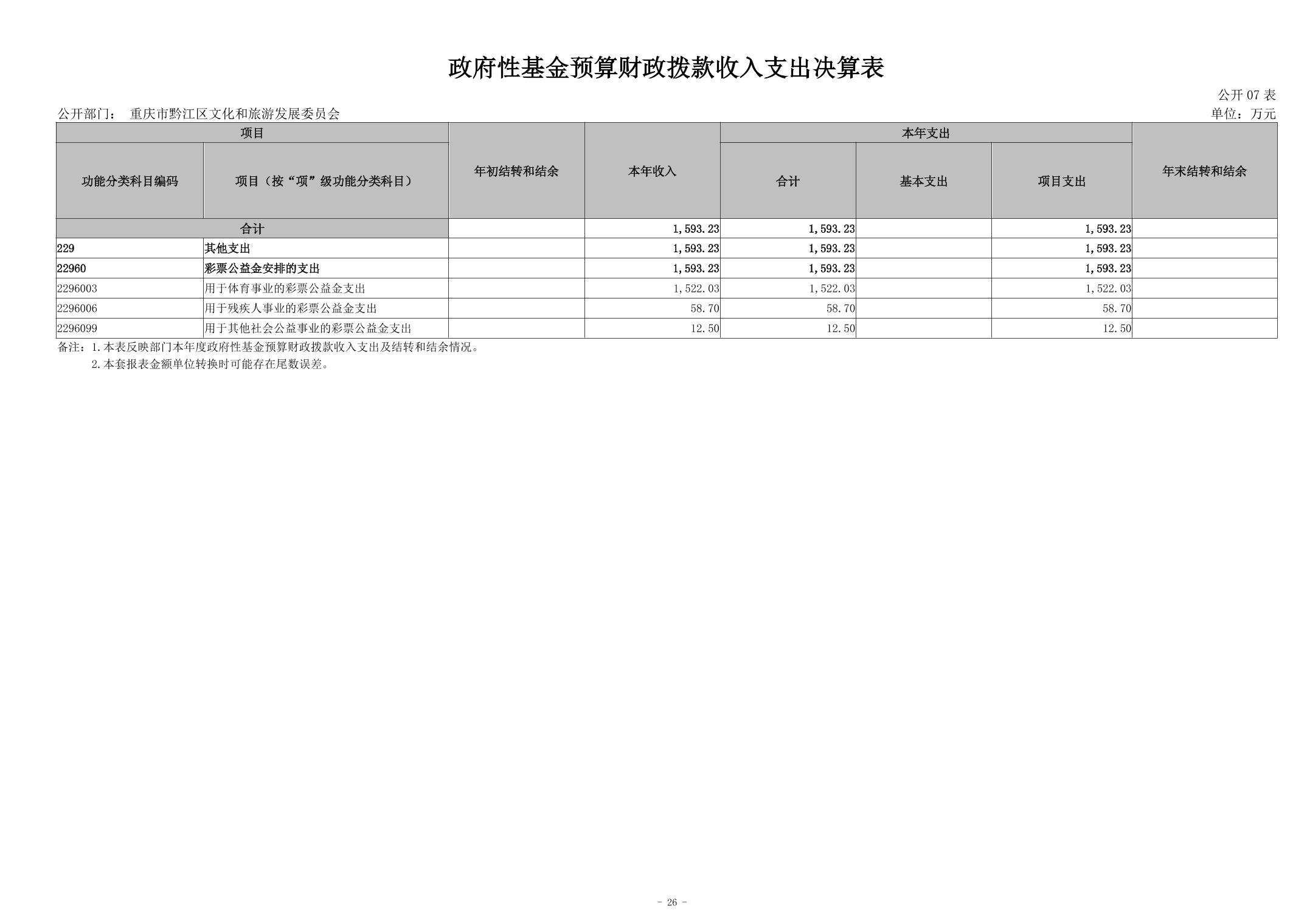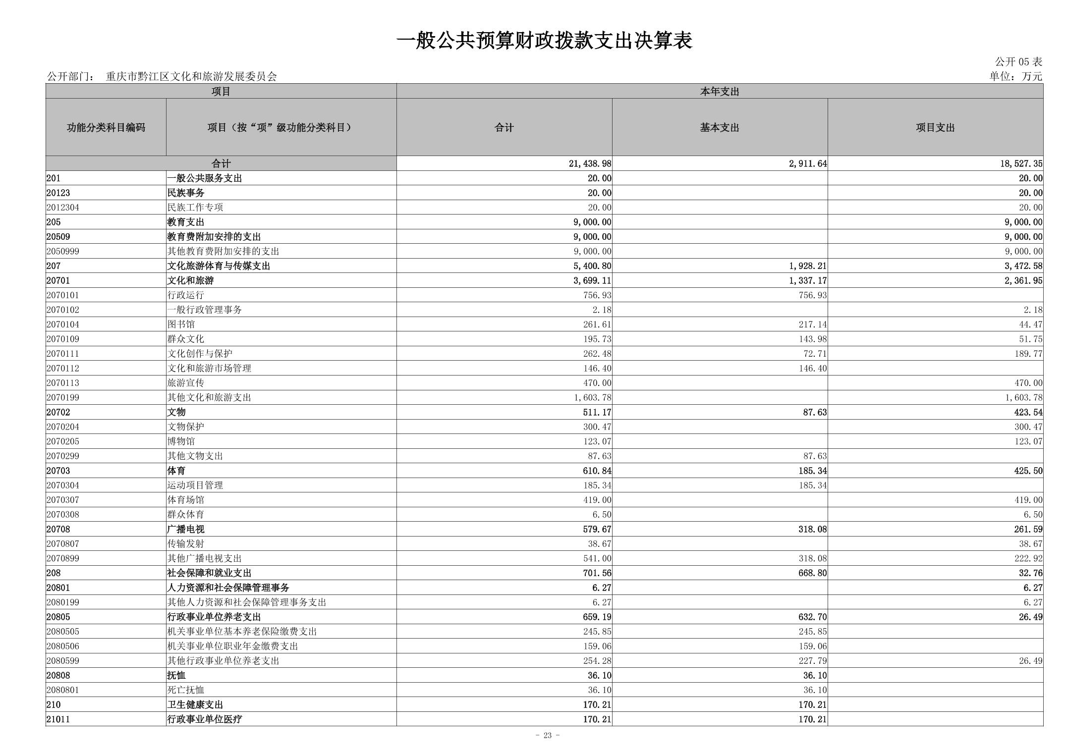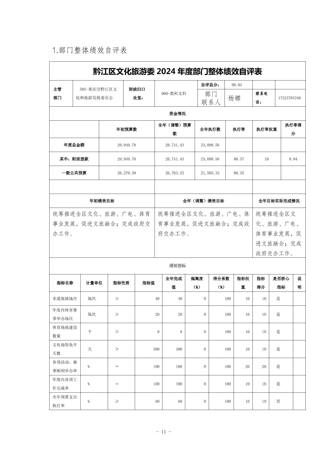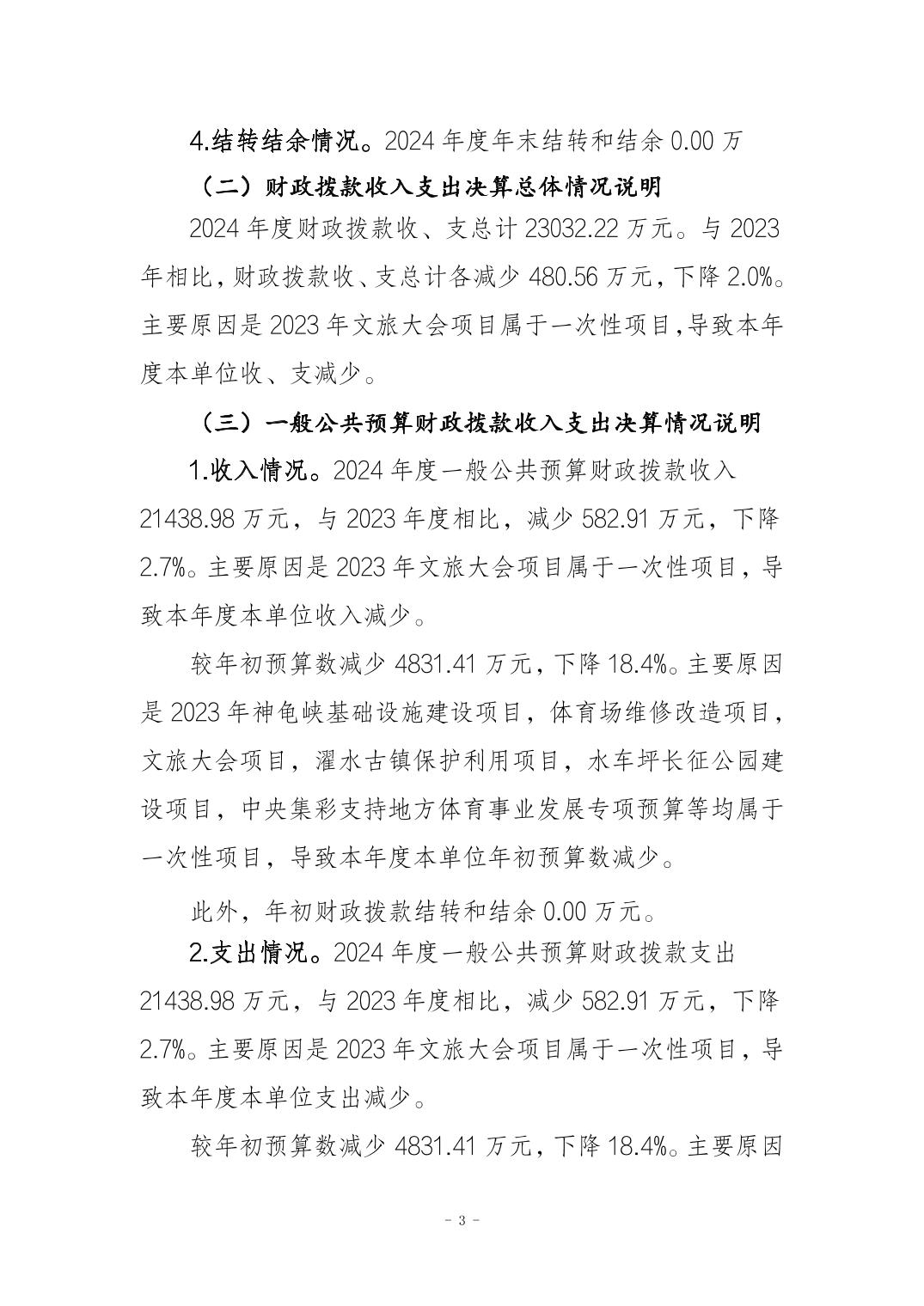 重慶市黔江區文化和旅游發展委員會2024年度決算公開說明">