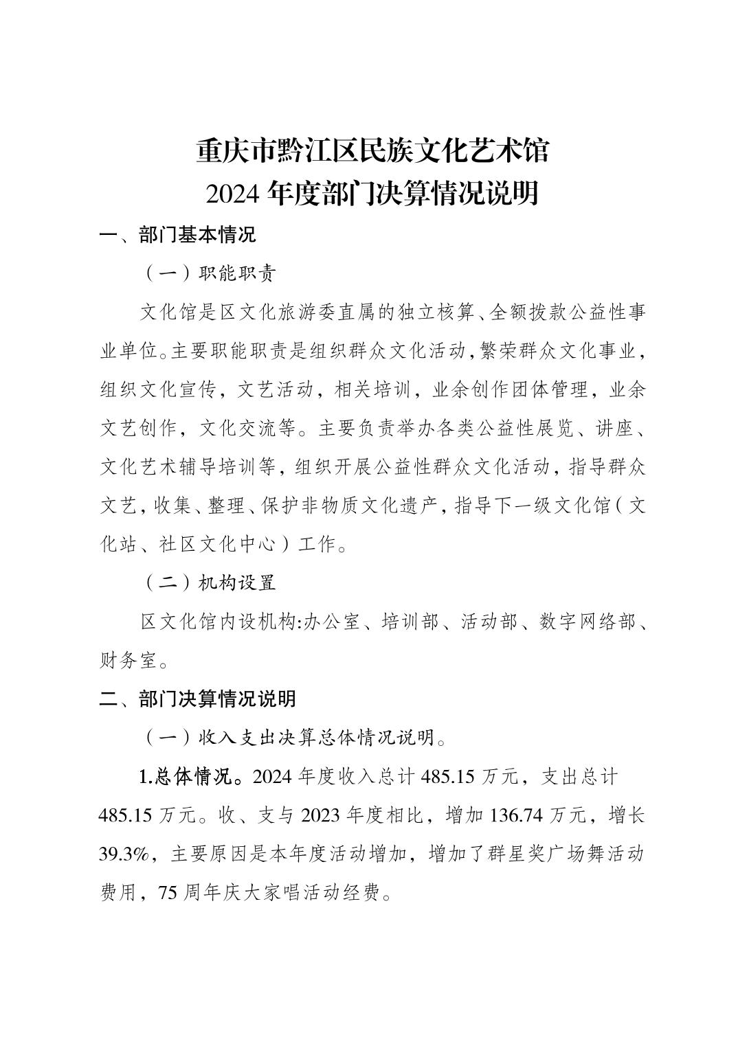 重慶市黔江區(qū)民族文化藝術(shù)館2024年度決算公開說明">