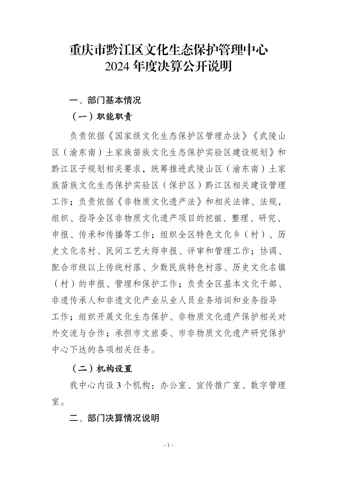 重慶市黔江區文化生態保護管理中心2024年度決算公開說明">