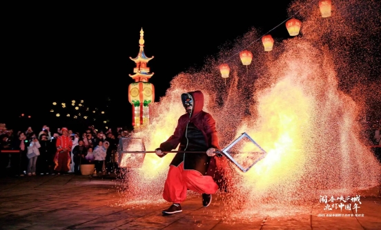 本屆燈會現場有來自全國各地與黔江本地的特色美食、文創產品與親子娛樂項目。此外,燈會期間還上演了火壺、高蹺舞獅、變臉吐火等非遺藝術節目。更有月老、財神、不倒翁以及白虎谷主與十三寨寨主等角色NPC穿梭其間,進行互動巡游表演。