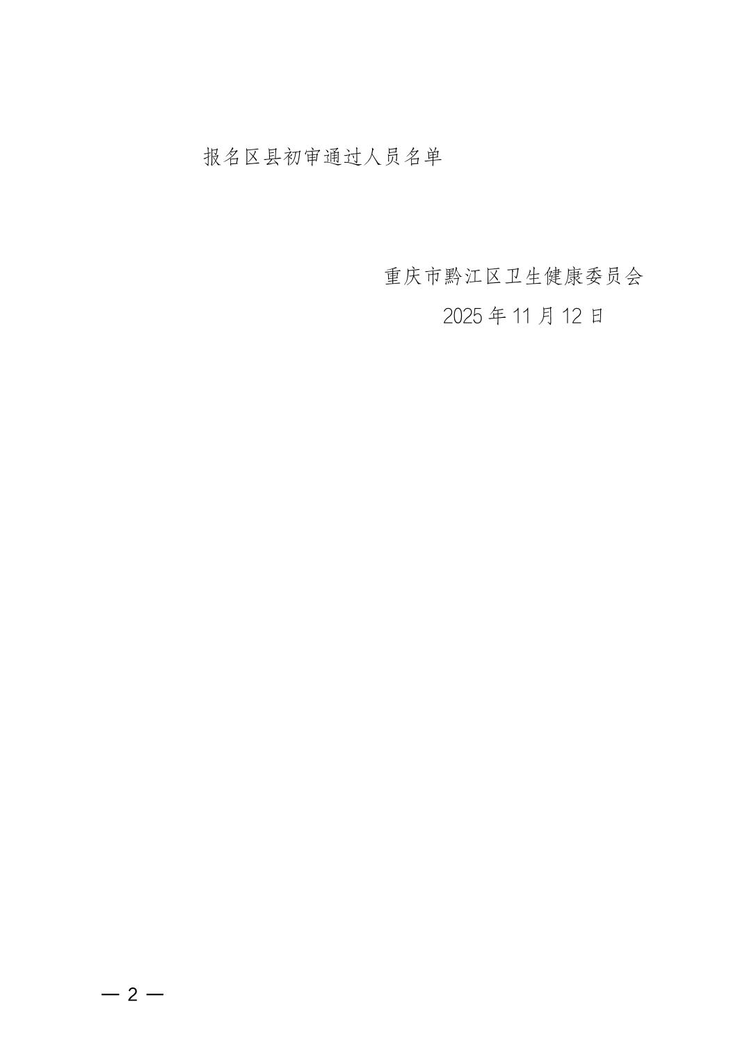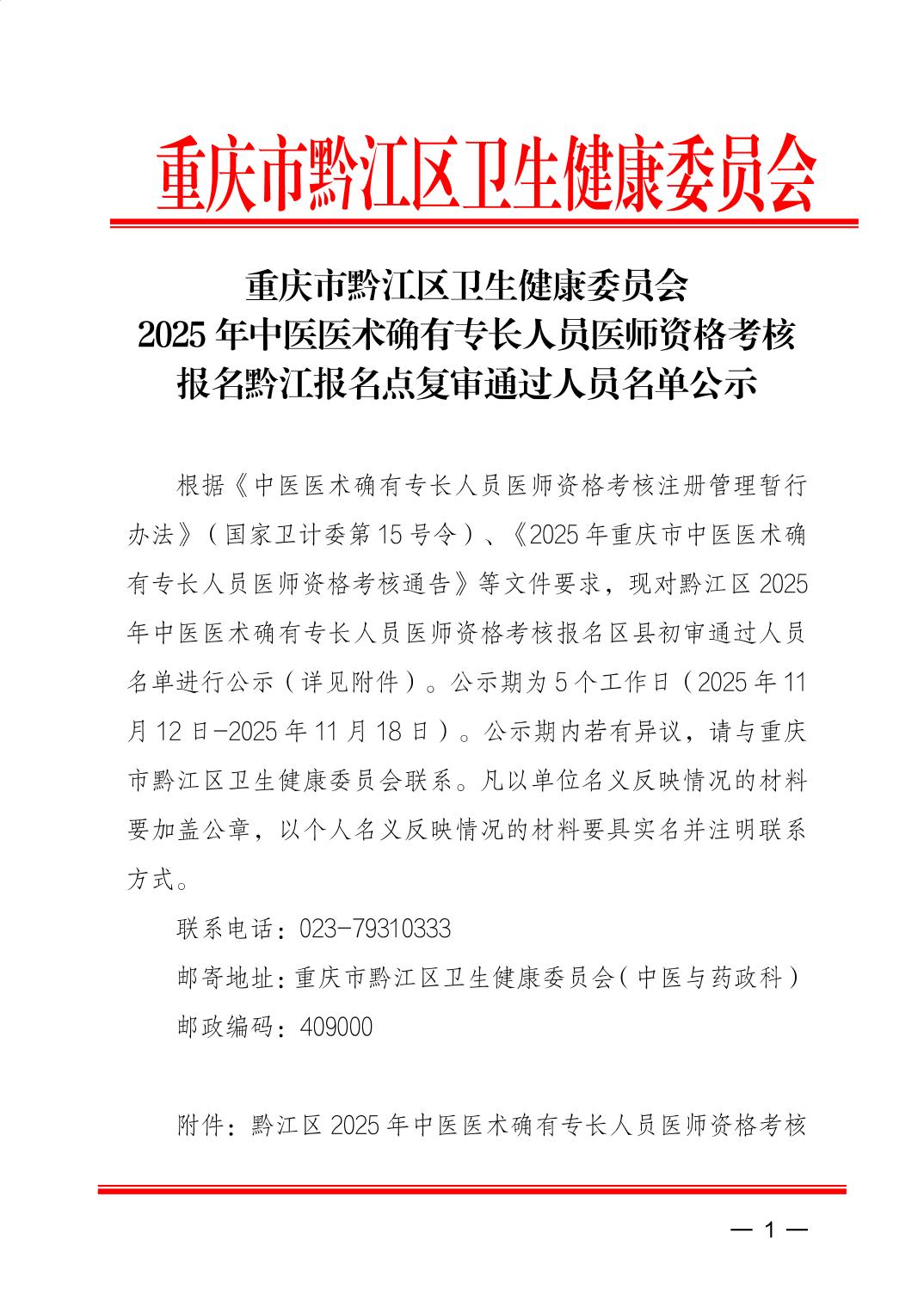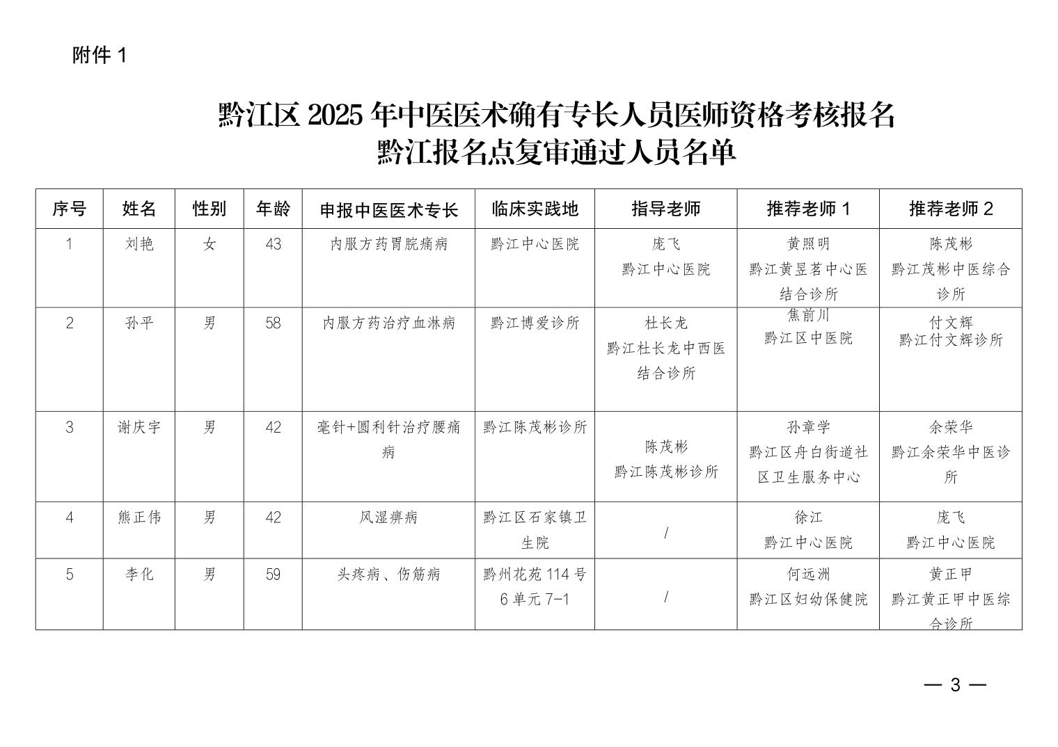 重慶市黔江區衛生健康委員會2025年中醫醫術確有專長人員醫師資格考核報名黔江報名點復審通過人員名單公示