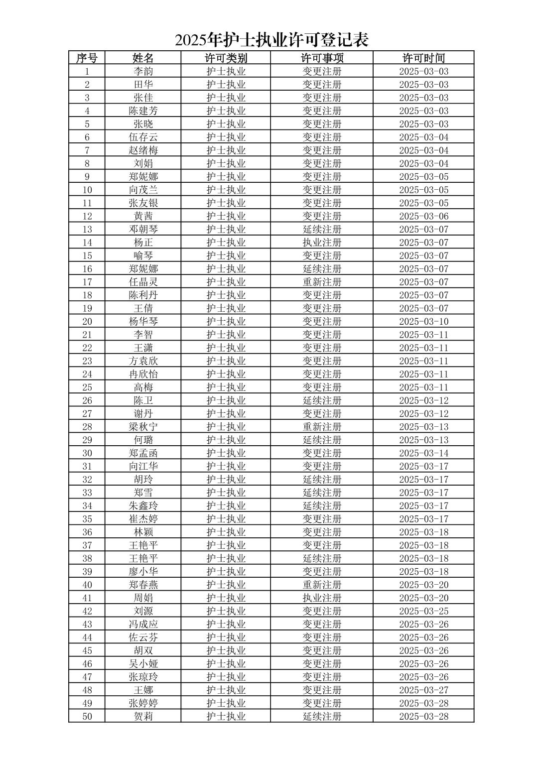 2025年3月行政許可辦理結果