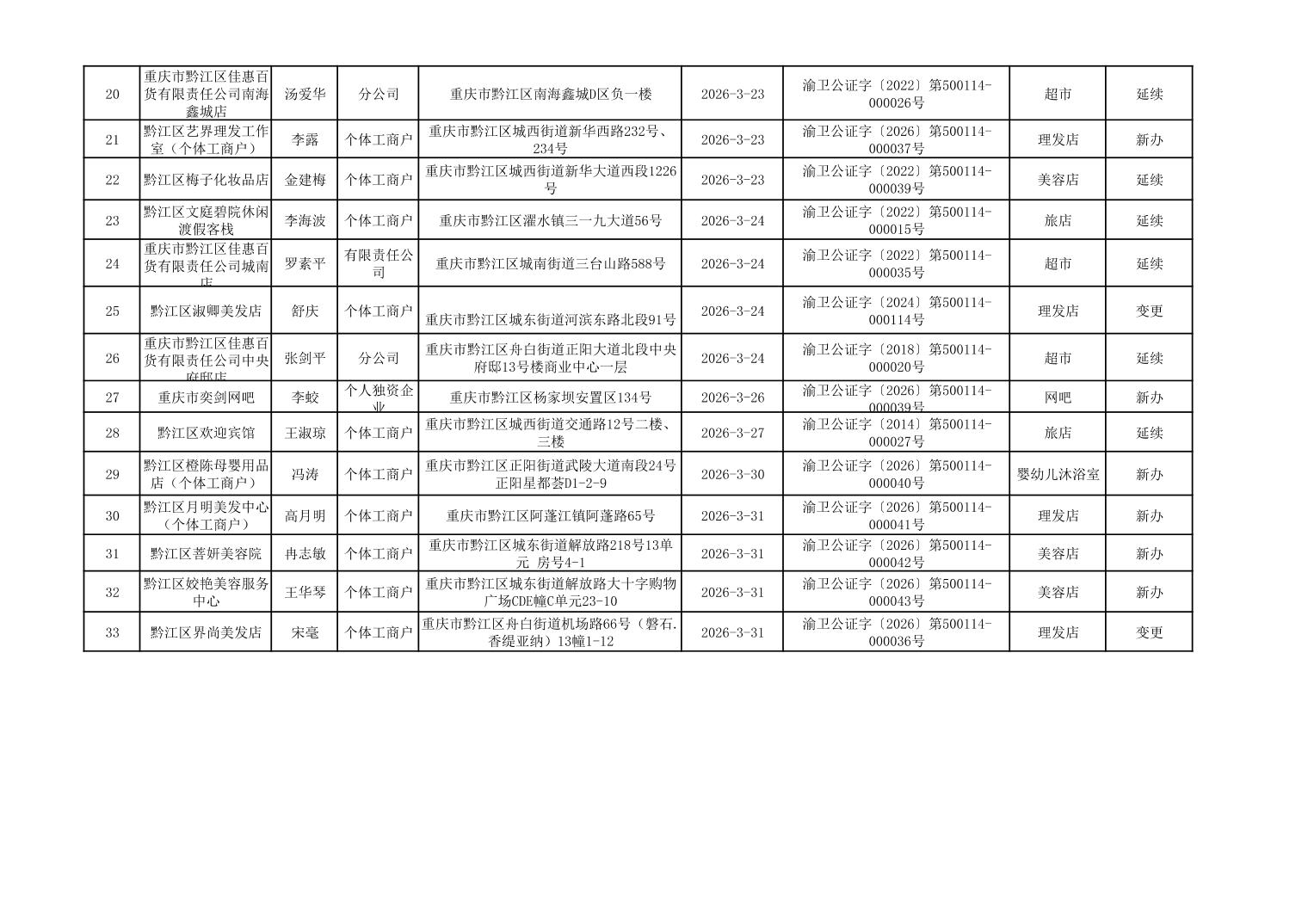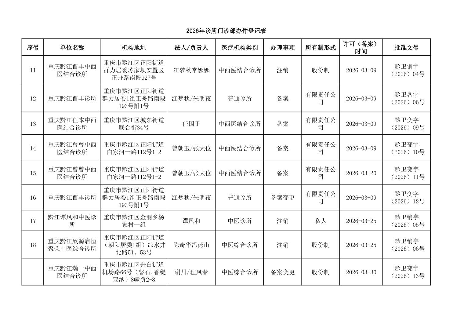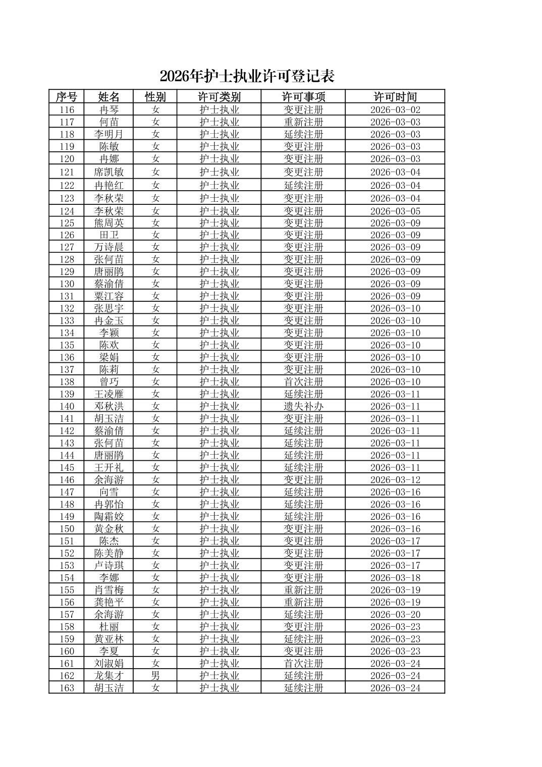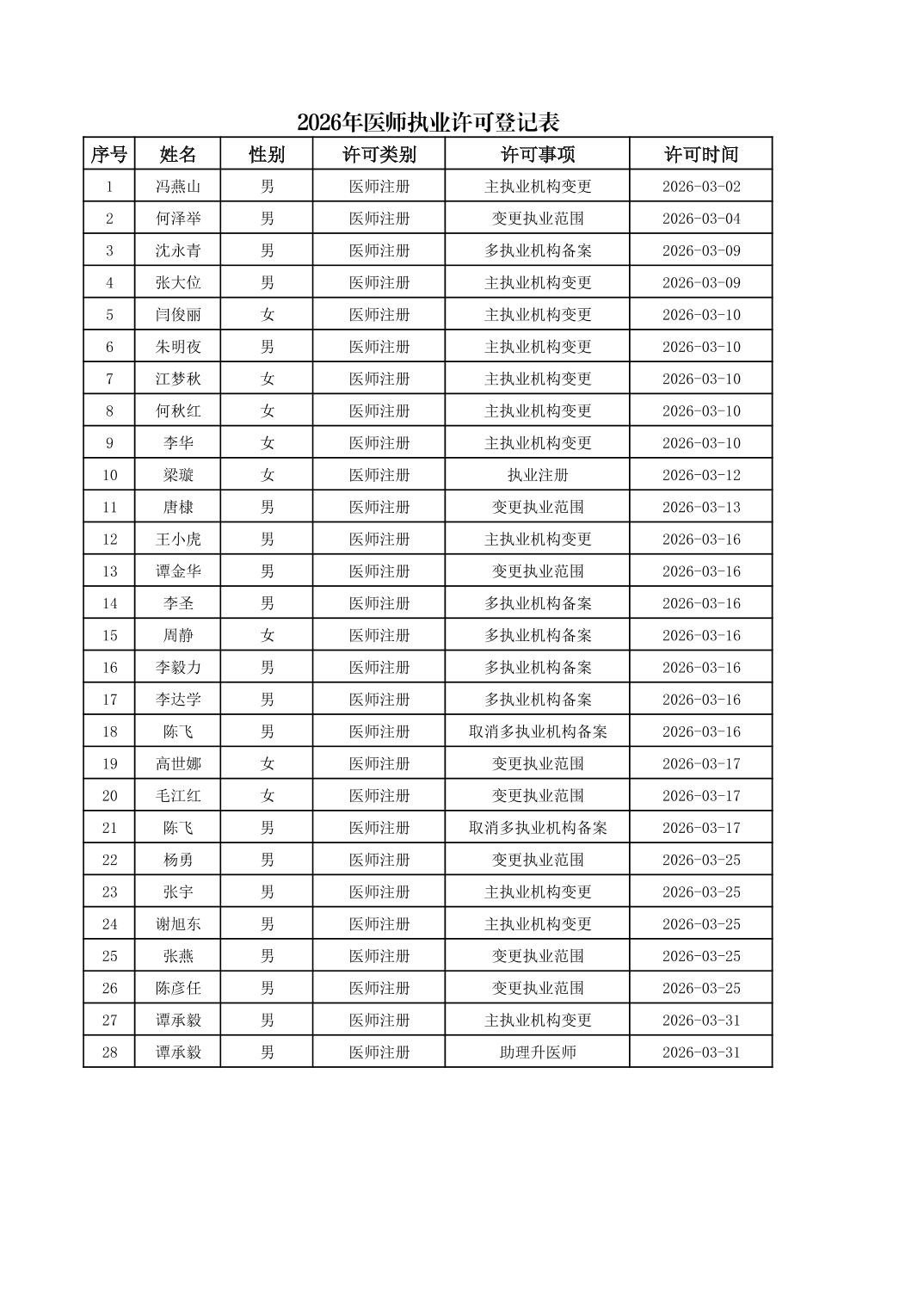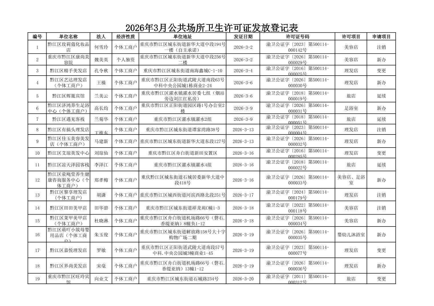 2026年3月行政許可辦理結果