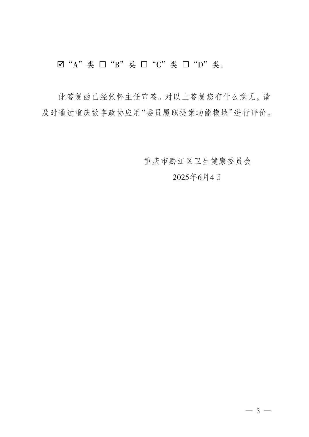 重慶市黔江區(qū)衛(wèi)生健康委員會關(guān)于黔江區(qū)政協(xié)五屆四次會議提案第305號辦理情況的答復(fù)函