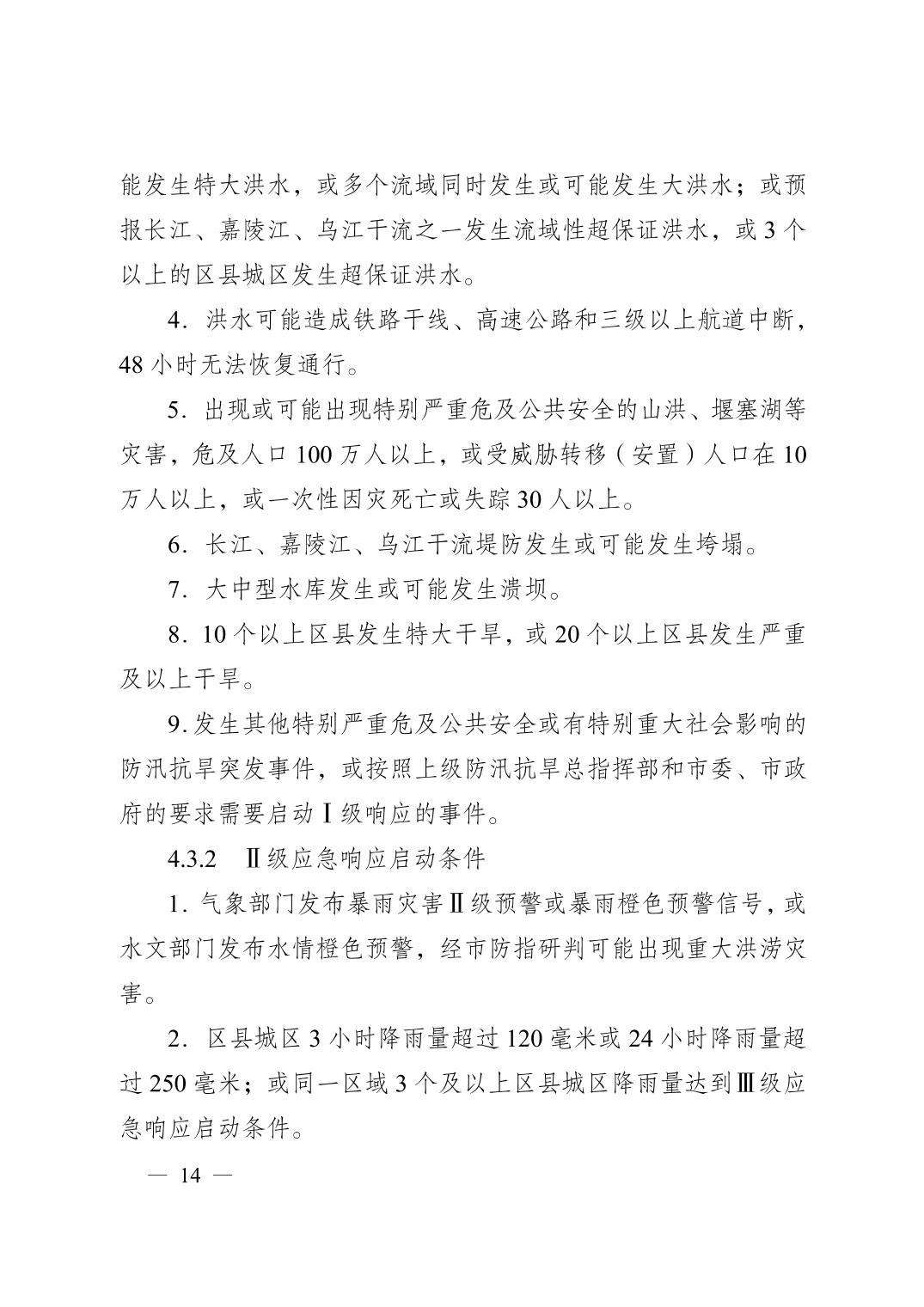 重慶市人民政府辦公廳關(guān)于印發(fā)重慶市防汛抗旱應(yīng)急預(yù)案的通知