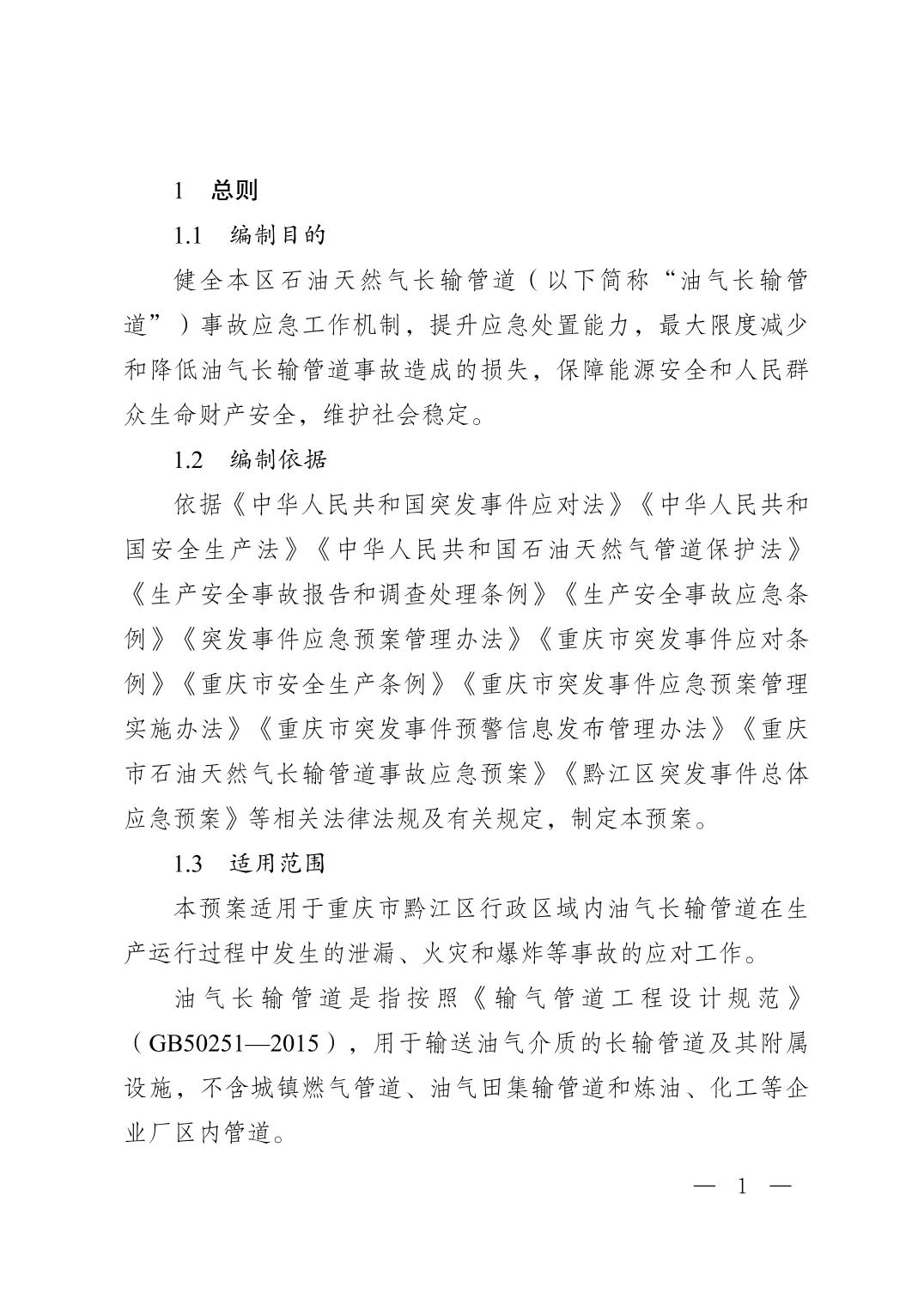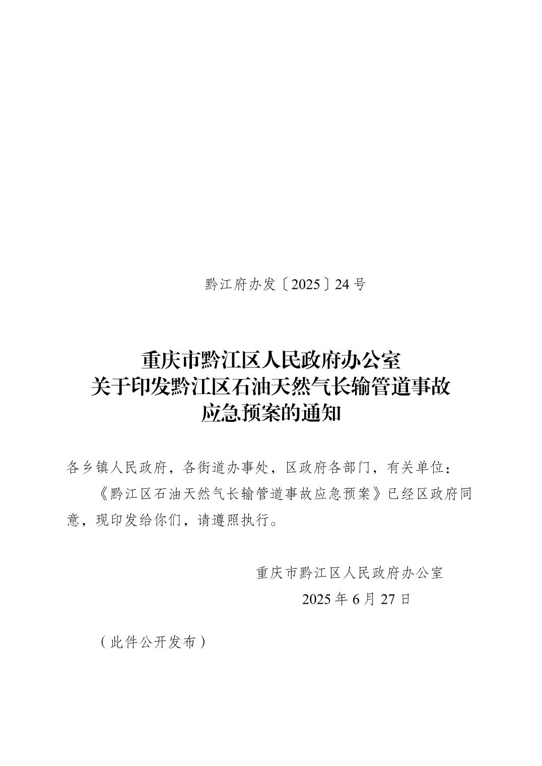 重慶市黔江區人民政府辦公室關于印發黔江區石油天然氣長輸管道事故 應急預案的通知