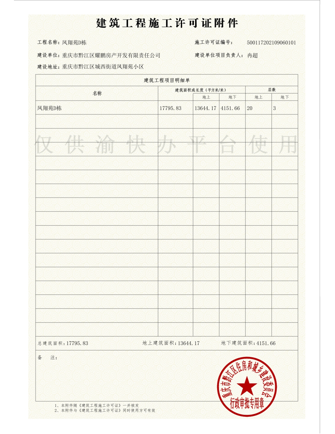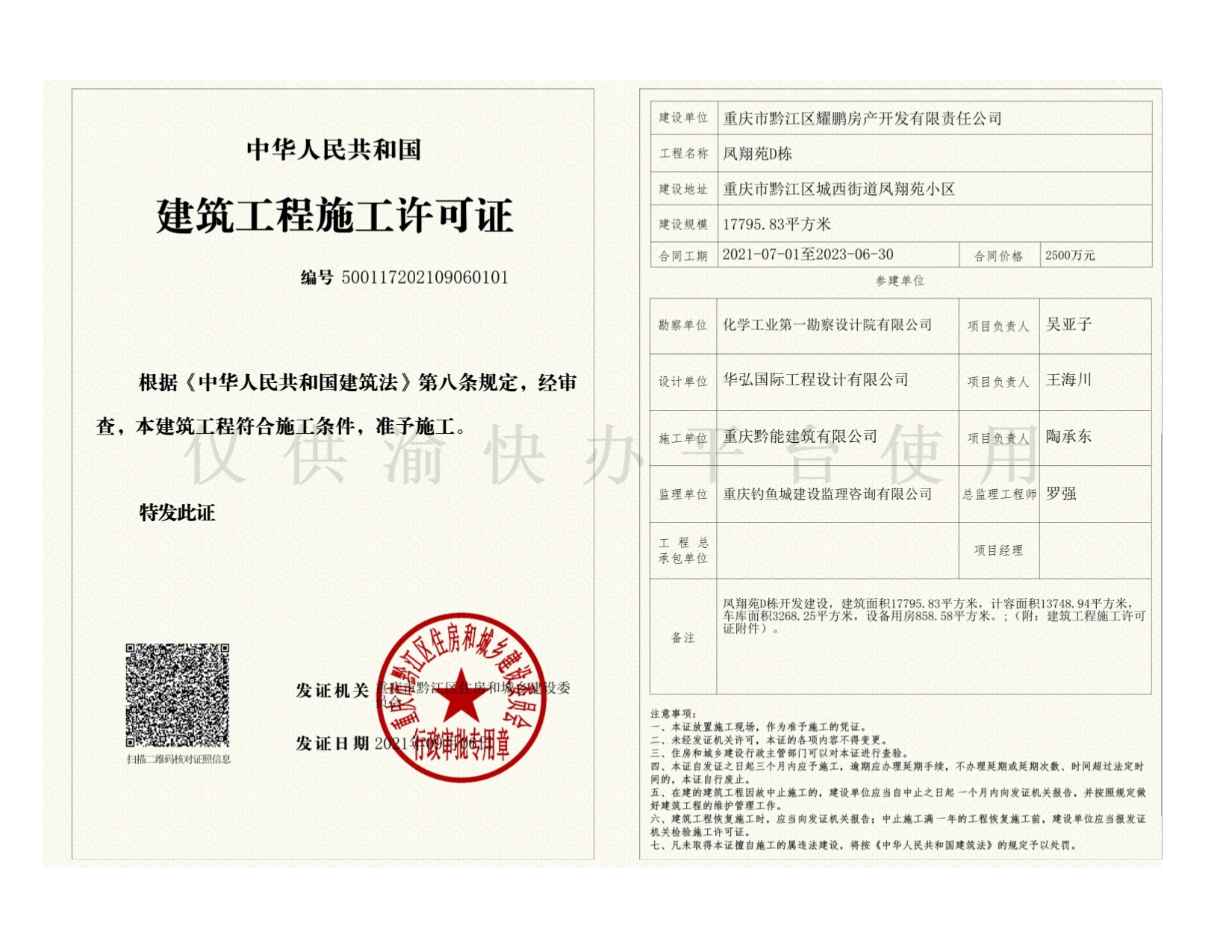 建筑工程施工許可證(鳳翔苑D棟)