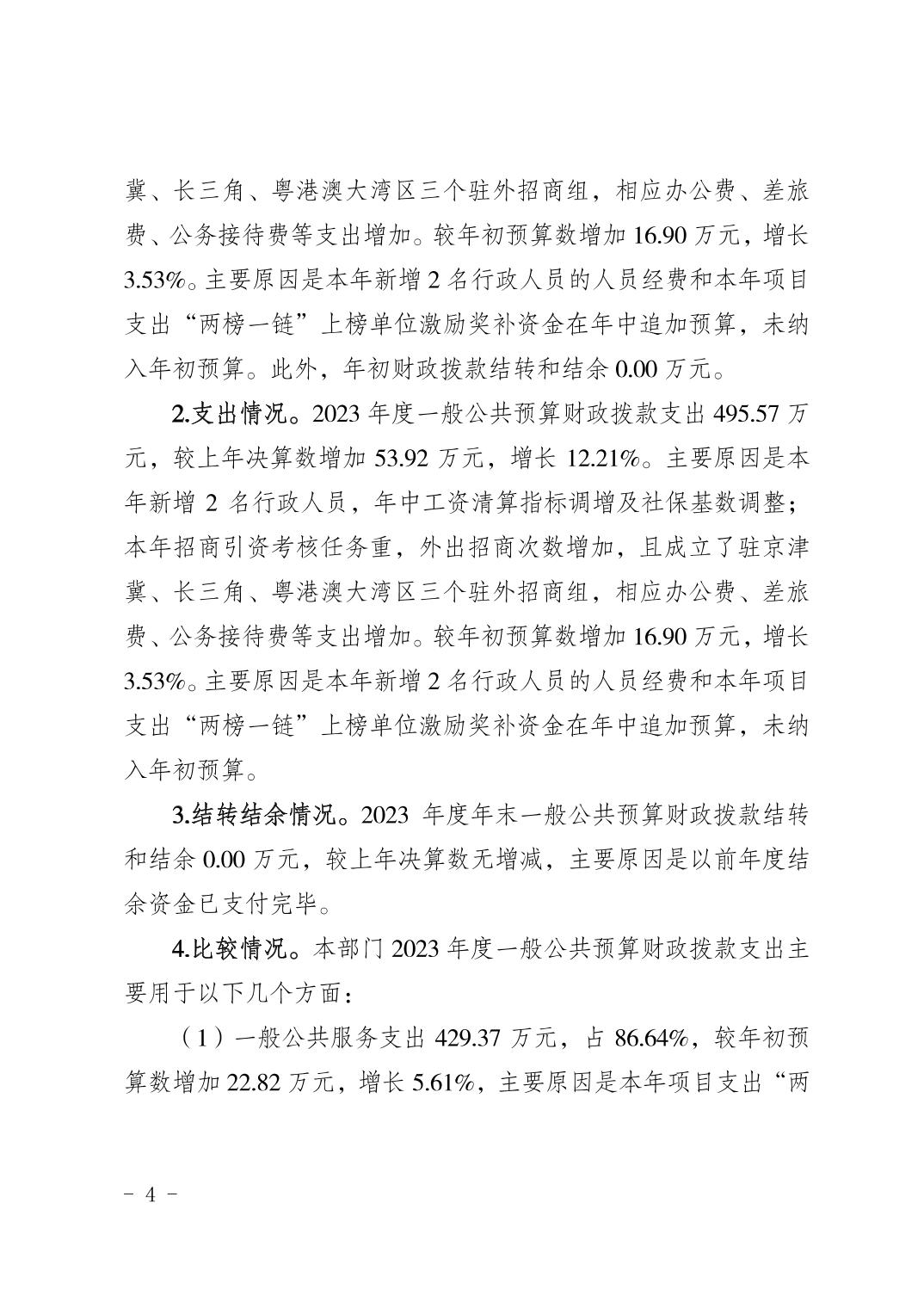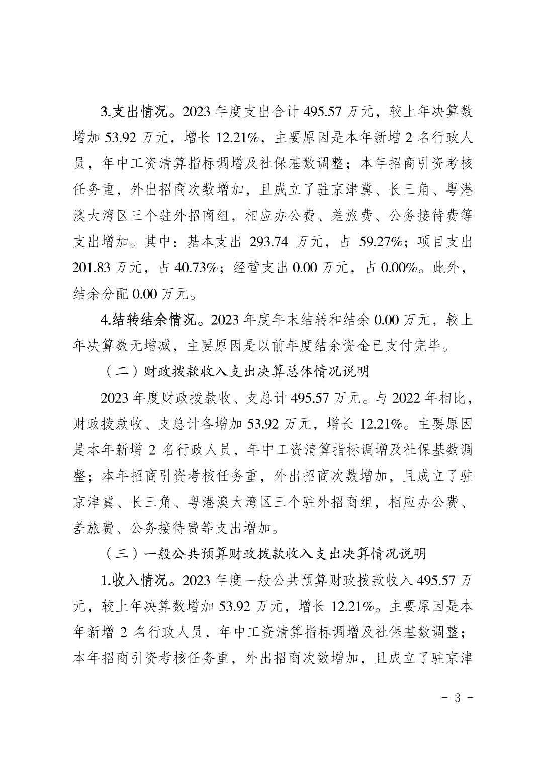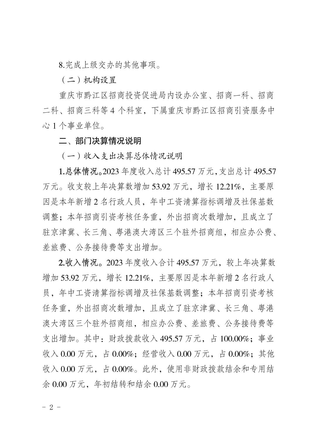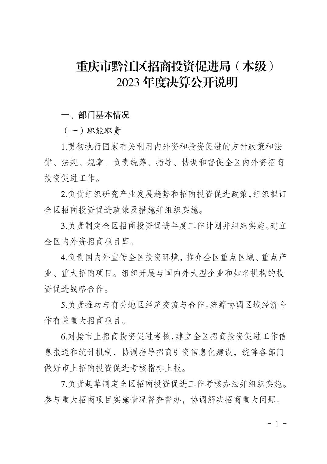 重慶市黔江區(qū)招商投資促進(jìn)局(本級(jí))2023年度決算公開說明">
