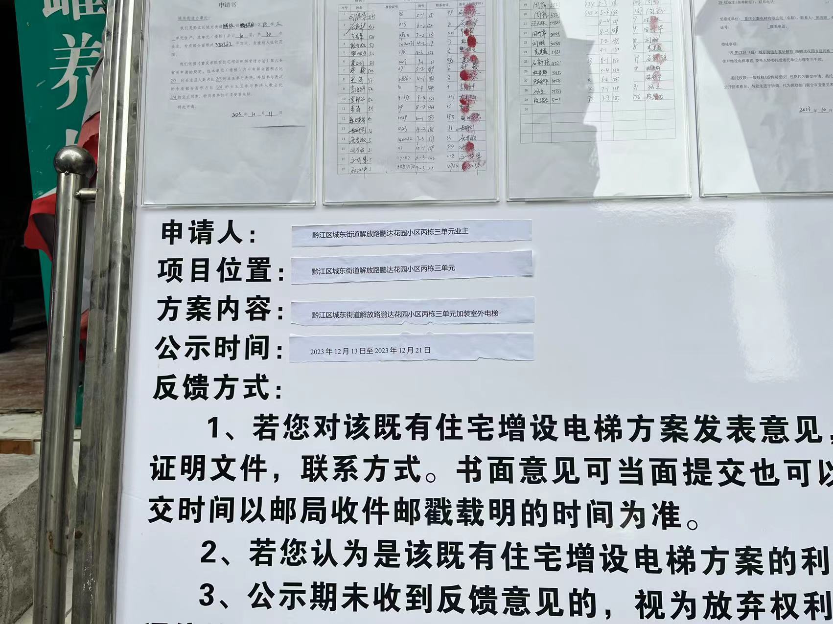 重慶市黔江區城東街道既有住宅增設電梯公告