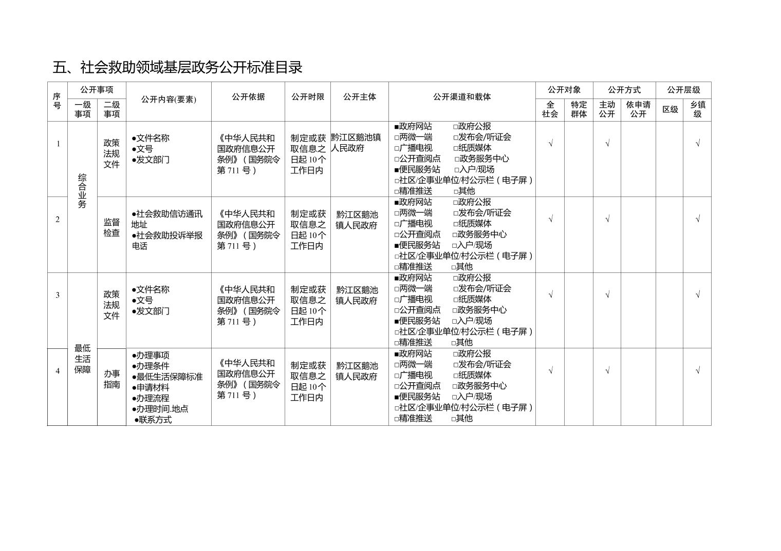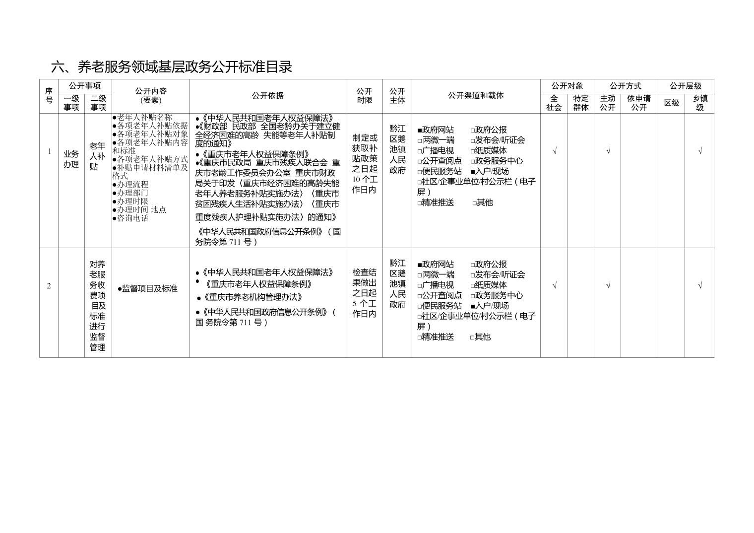 鵝池鎮試點領域基層政務公開標準目錄(2025年版)">