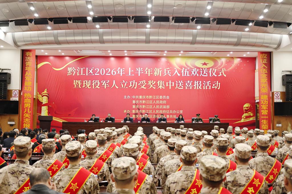 黔江區(qū)舉行2026年上半年新兵入伍歡送儀式暨現(xiàn)役軍人立功受獎集中送喜報活動