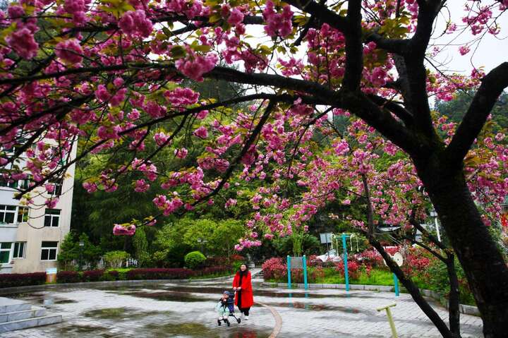 “洞塘人家”廣場觀賞櫻花